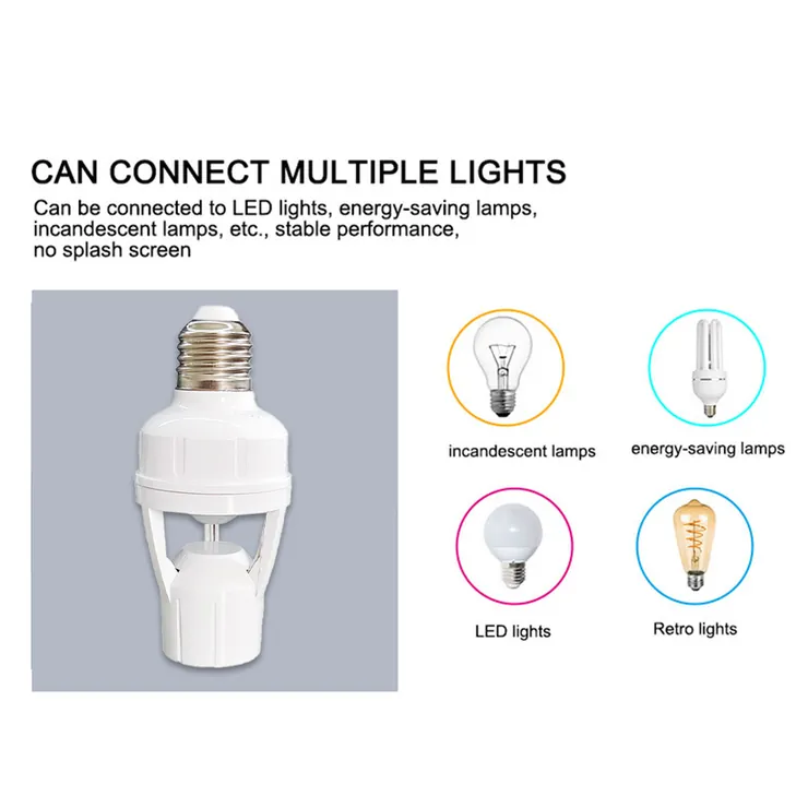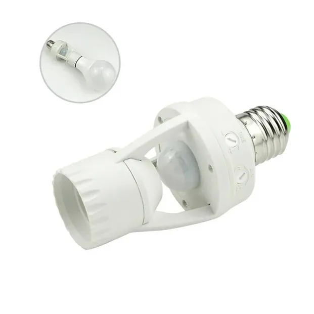 E27 motion sensor light socket adapter with PIR infrared sensor. Automatically turns lights on/off.