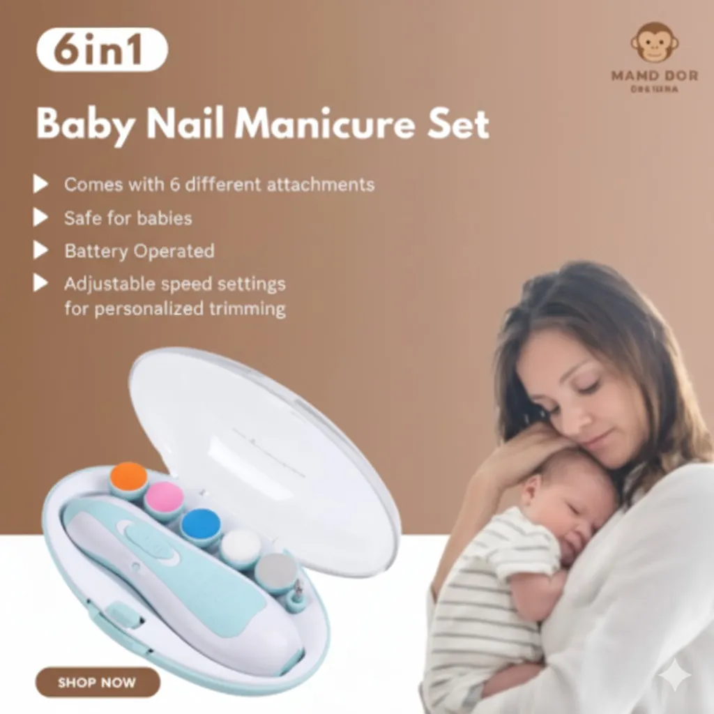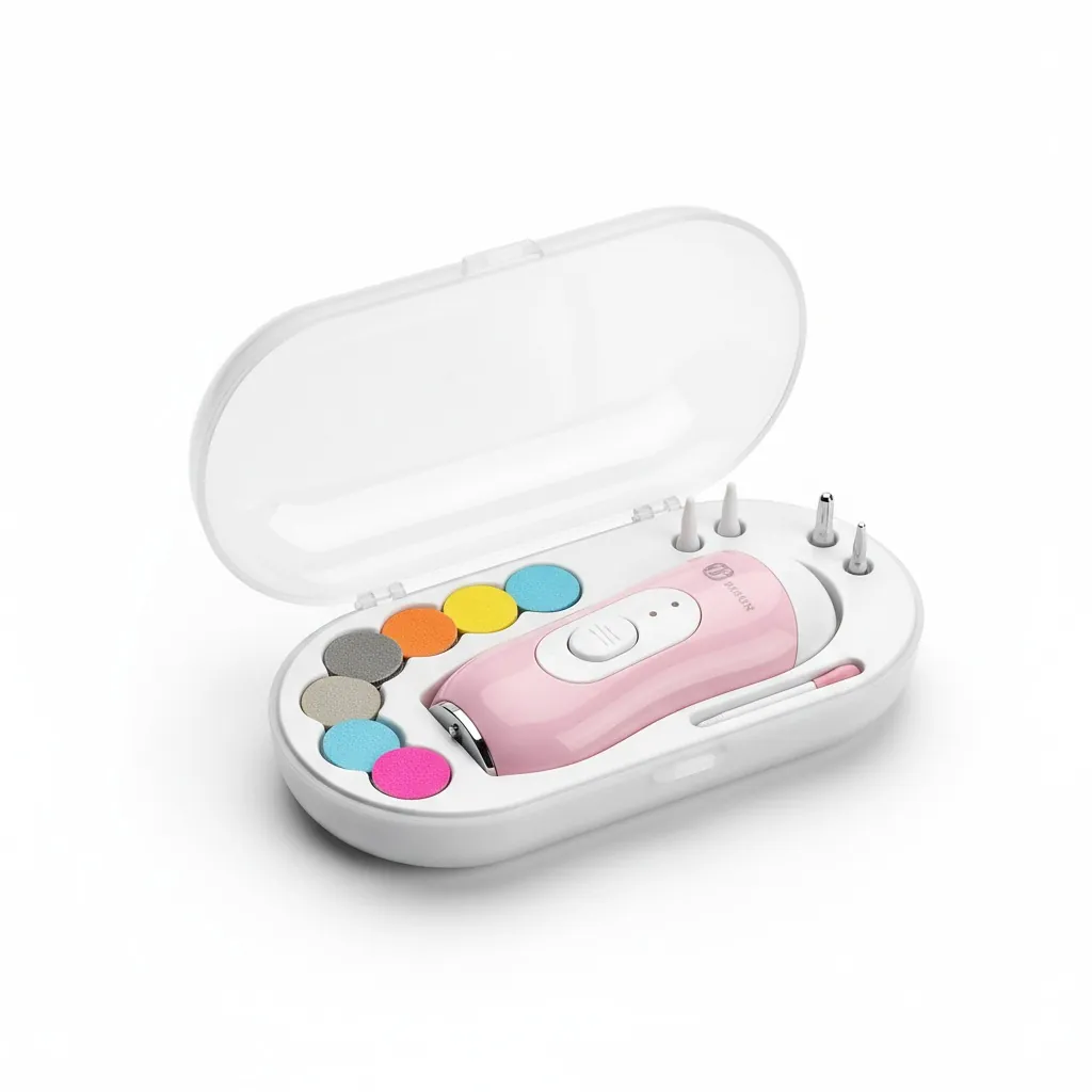 Electric Baby Nail Trimmer and File Set | Safe, Silent, and Ergonomic Infant Manicure Kit with 6 Grinding Heads | Gentle Nail Care Solution for Newborns, Toddlers, and Adults