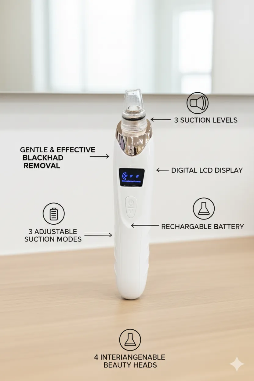 This portable device features multiple suction levels and interchangeable heads, making it suitable for all skin types β whether oily, dry, or combination. The USB rechargeable battery offers convenience and eco-friendly use without the hassle of replacing batteries.Add this tool to your skincare routine for professional-level results from the comfort of your home!