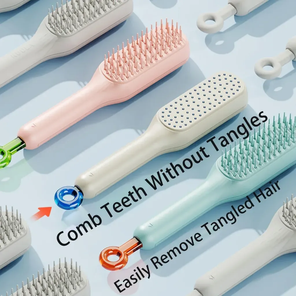 Upgrade your daily hair care routine with the Self-Cleaning Anti-Static Hair Brush, designed for smooth styling and effortless cleaning. This innovative brush features a one-press self-cleaning mechanism that lifts hair from the bristles instantly—no more messy detangling by hand. Its anti-static bristles reduce frizz, while the massage-tip design improves scalp circulation for healthier, shinier hair. Perfect for women, men, and kids, this telescopic styling tool works on straight, curly, thick, and fine hair.
