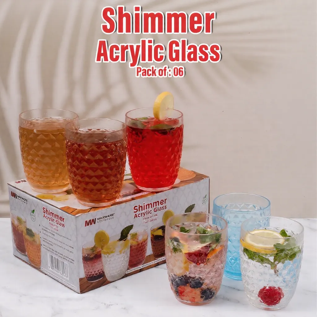 Crafted for durability, these glasses are strong and resistant to daily wear, ensuring long-term use. The smooth finish allows easy cleaning and maintenance, making them practical for regular use in homes, cafes, and restaurants. It also makes a great gift option due to its elegant appearance.Shimmer Glass Set (6 Pcs Pack) Price in Pakistan