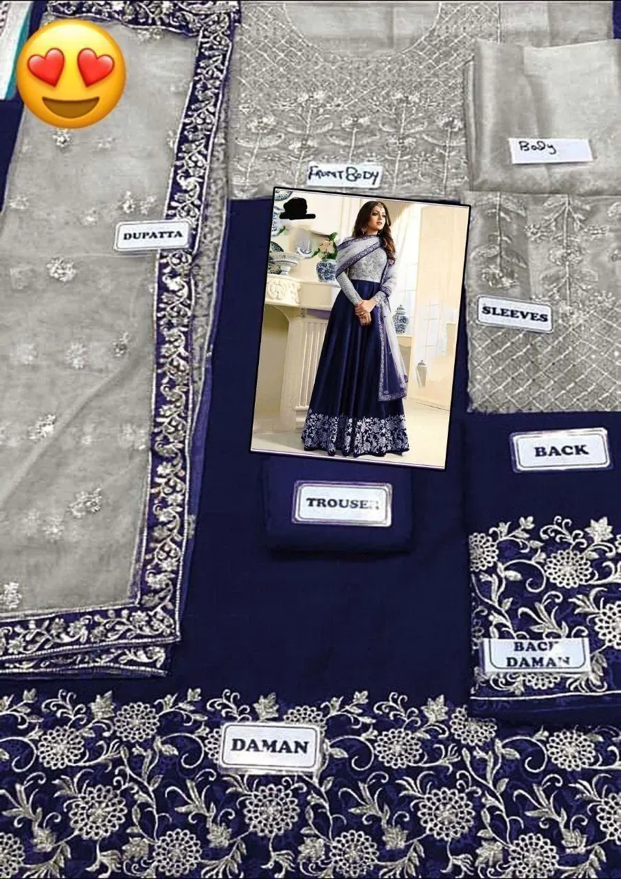 The Finishing Touches: The ensemble is completed with an ethereal embroidered net dupatta, which is light and airy. It is finished with a stitched embroidery lace on its borders, perfectly complementing the gown. A plain trouser fabric is included to complete the suit. With a generous length of 60 inches, this is a true floor-length gown designed to make a statement.