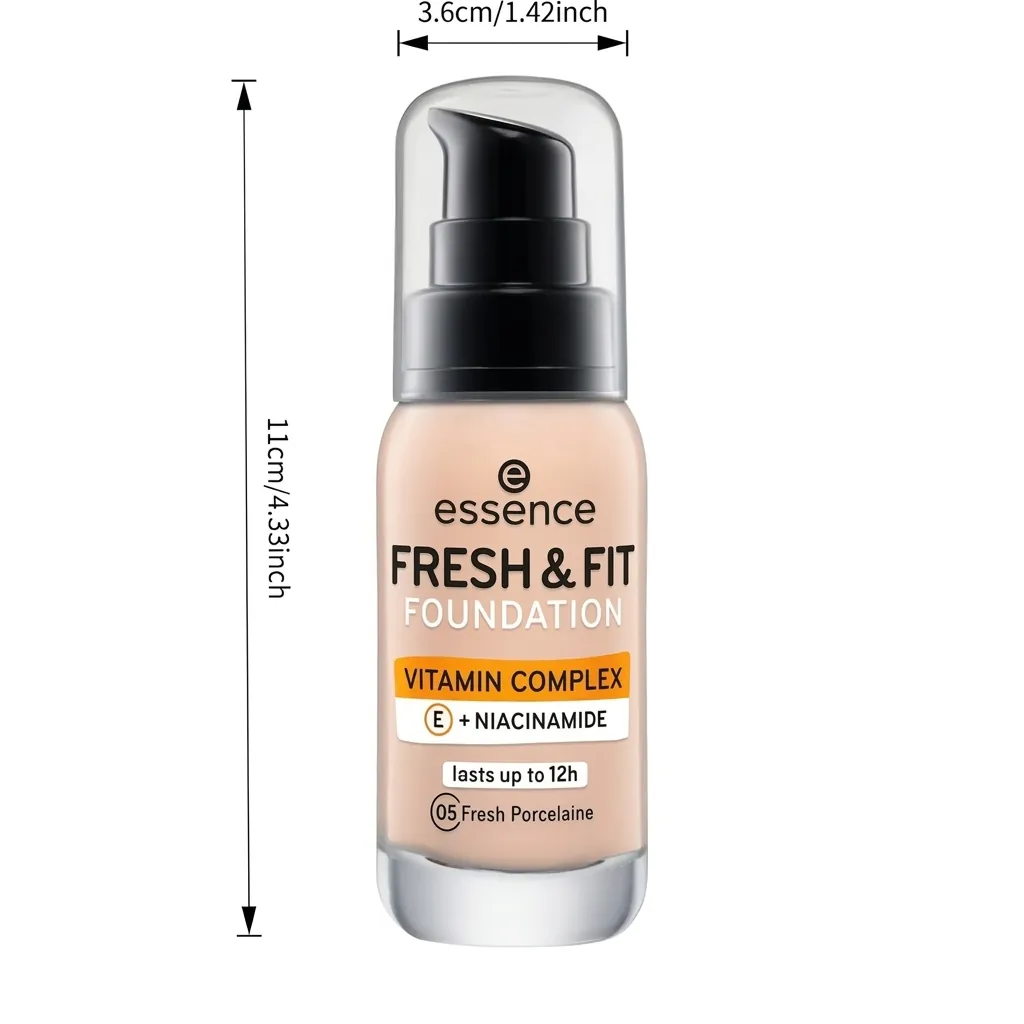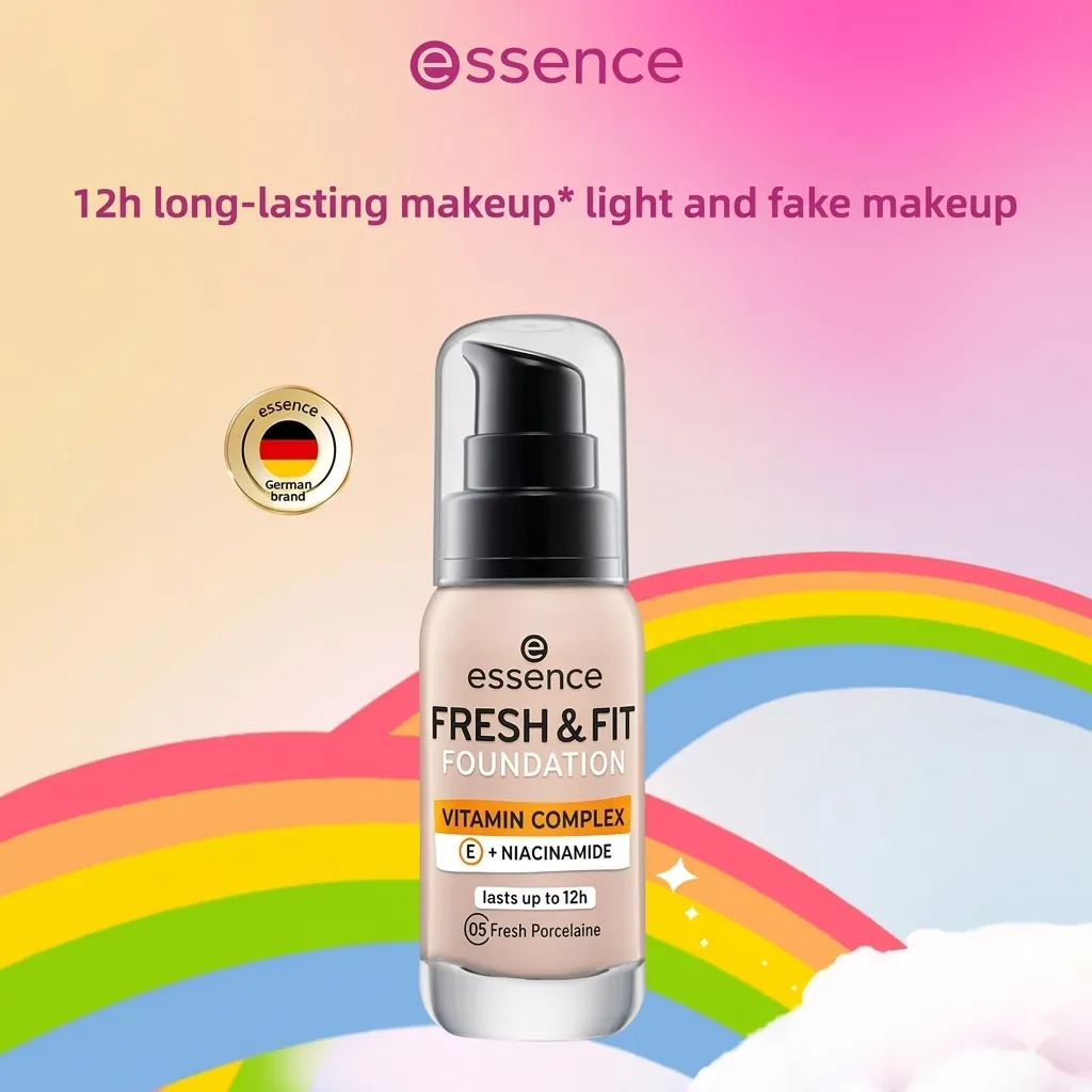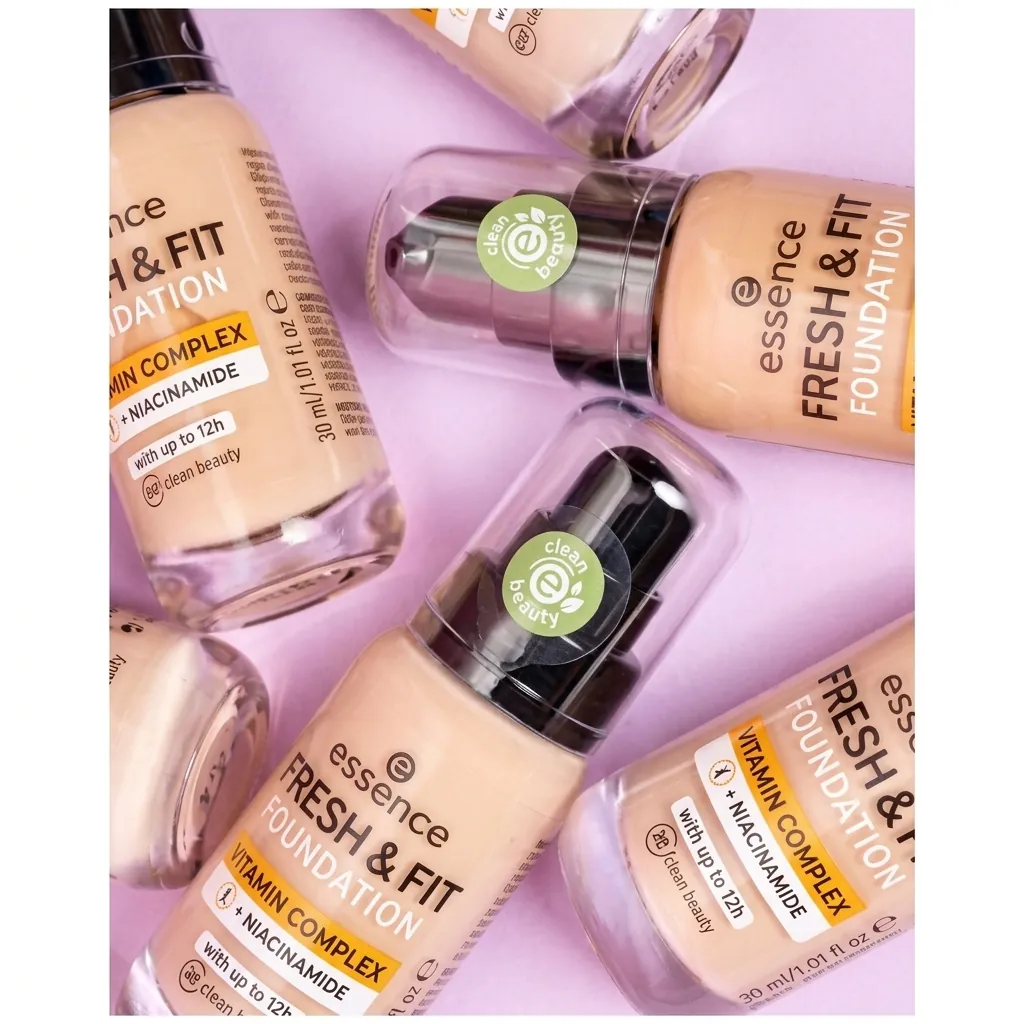 Discover your new go-to for flawless skin with the Essence Fresh & Fit Foundation. This innovative liquid foundation is designed to give you a natural, healthy glow that lasts all day, thanks to its impressive 12-hour wear formula. Infused with a skin-loving Vitamin Complex, featuring Vitamin E and Niacinamide, it not only perfects your complexion but also nourishes your skin. The lightweight, breathable texture ensures comfortable wear without feeling heavy or cakey. Plus, it's proudly vegan, aligning with conscious beauty choices. Achieve an even skin tone, minimize imperfections, and enjoy a fresh, radiant look that stays put from morning to night.