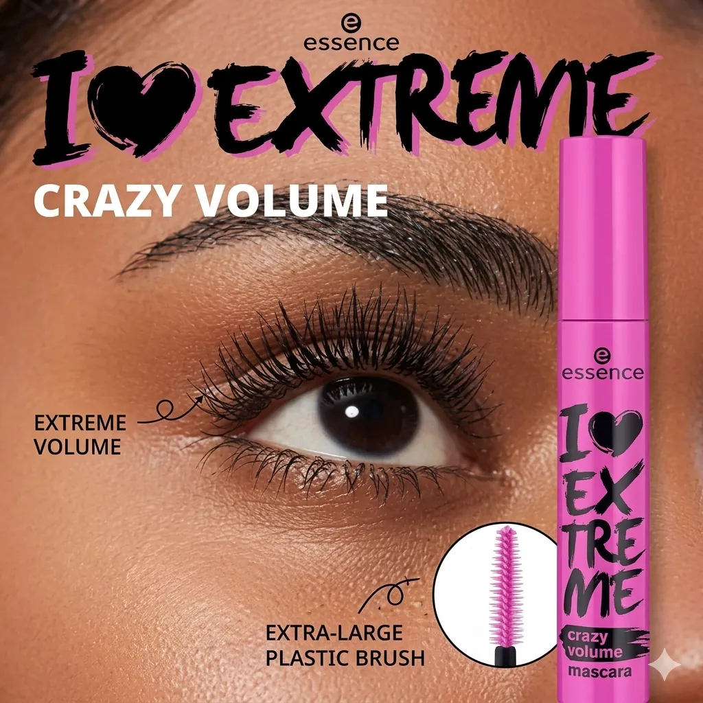 Unleash extreme volume and intense definition with the Essence I Love Extreme Volume Mascara. This fan-favorite mascara, presented in a vibrant pink and black tube, is designed to give your lashes a bold, impactful look that stands out. Its large, fiber brush works to capture and coat every single lash, building dramatic volume from root to tip without clumping. The rich, black formula adds depth and intensity, making your eyes pop. Perfect for those who desire maximum lash impact, whether for everyday wear or a special occasion. Essence is known for its high-quality, affordable cosmetics, and this mascara is a testament to its effectiveness in delivering stunning results.