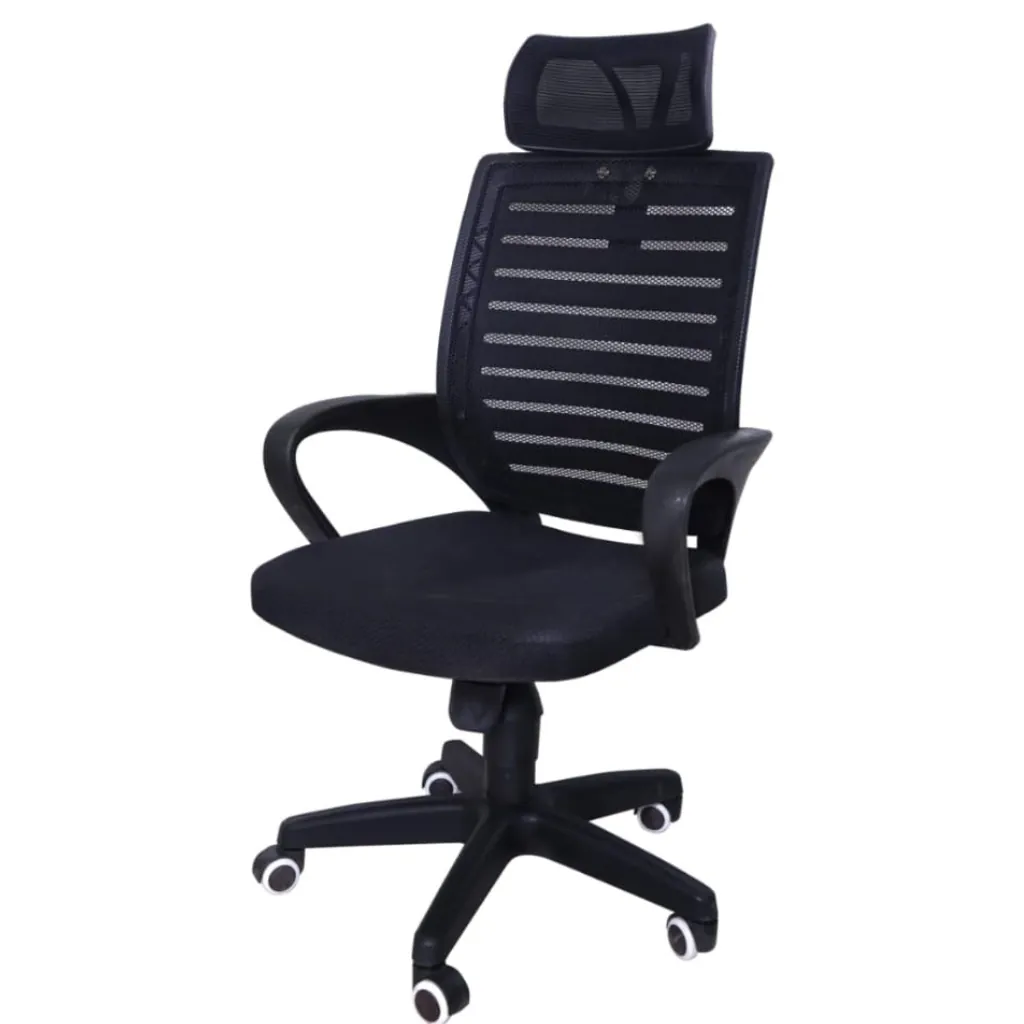 Office Chair Mesh and Stripe Back Support Model 685 with Headrest ek premium ergonomic office chair hai jo comfort aur productivity ko improve karne ke liye design ki gayi hai. Is chair ka high-back mesh design aur built-in headrest neck aur back ko proper support provide karta hai, jis se long working hours me fatigue kam hoti hai.