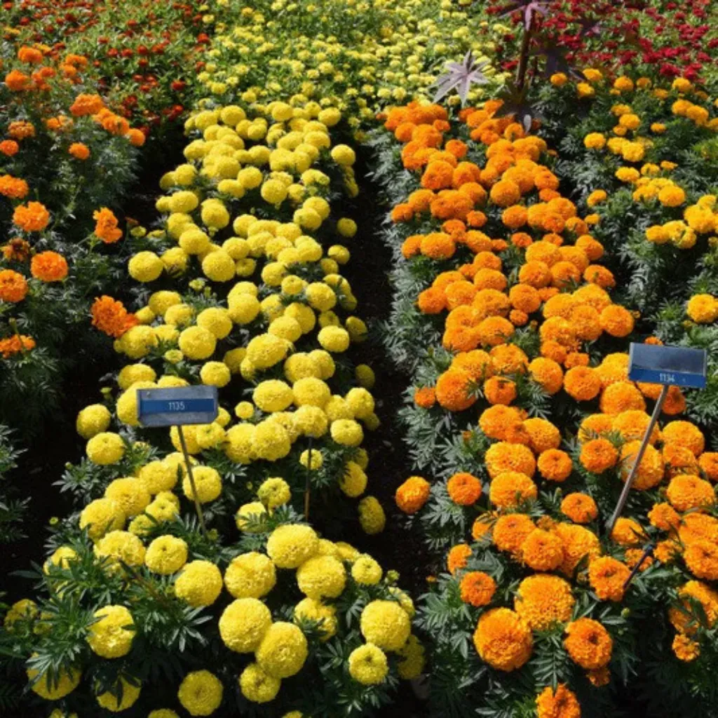 The dwarf plants stay short, bushy, and heavily flowering, making them perfect for balcony gardens, pots, terrace gardening, edging, and landscape borders. Their bright yellow spun blooms create a striking and cheerful display in any space.
