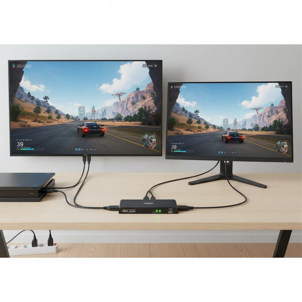 This device delivers full 4K Ultra HD performance, maintaining the vibrancy and detail of your content across both outputs. It is fully HDCP compliant, ensuring you won't encounter compatibility issues when connecting devices like gaming consoles, streaming media players, or satellite boxes.