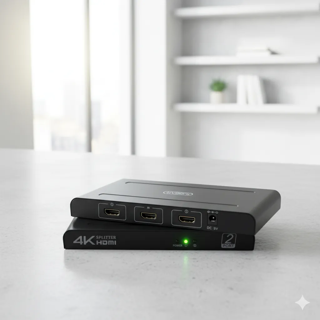 The FJGEAR HDMI Splitter 2 Port 4K (Model 102 Big Size) is an indispensable tool for anyone needing to distribute a single, high-definition video source to two screens with zero hassle. Perfect for retail displays, presentations, security monitoring, or an advanced home entertainment center, this splitter ensures both displays receive an identical, high-quality signal.