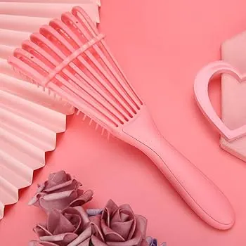 Gentle detangling brush with flexible bristles that effortlessly removes knots on all hair types, wet or dry, minimizing breakage and ensuring comfort.