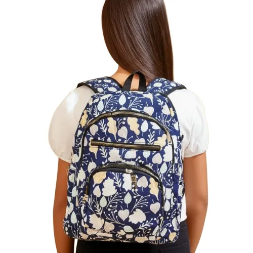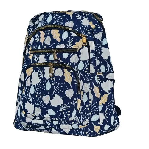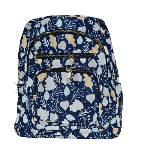 This stylish floral print backpack is the perfect blend of fashion and functionality. Designed for women who appreciate elegance and practicality, it features a beautiful navy blue base adorned with a delicate pattern of white, beige, and light blue leaves and branches. The backpack offers ample storage space with a spacious main compartment and multiple zippered pockets on the front, allowing you to organize your essentials efficiently. Its lightweight construction and comfortable shoulder straps make it ideal for everyday use, commuting, school, shopping, and light travel. Add a touch of floral charm to your look with this versatile backpack.