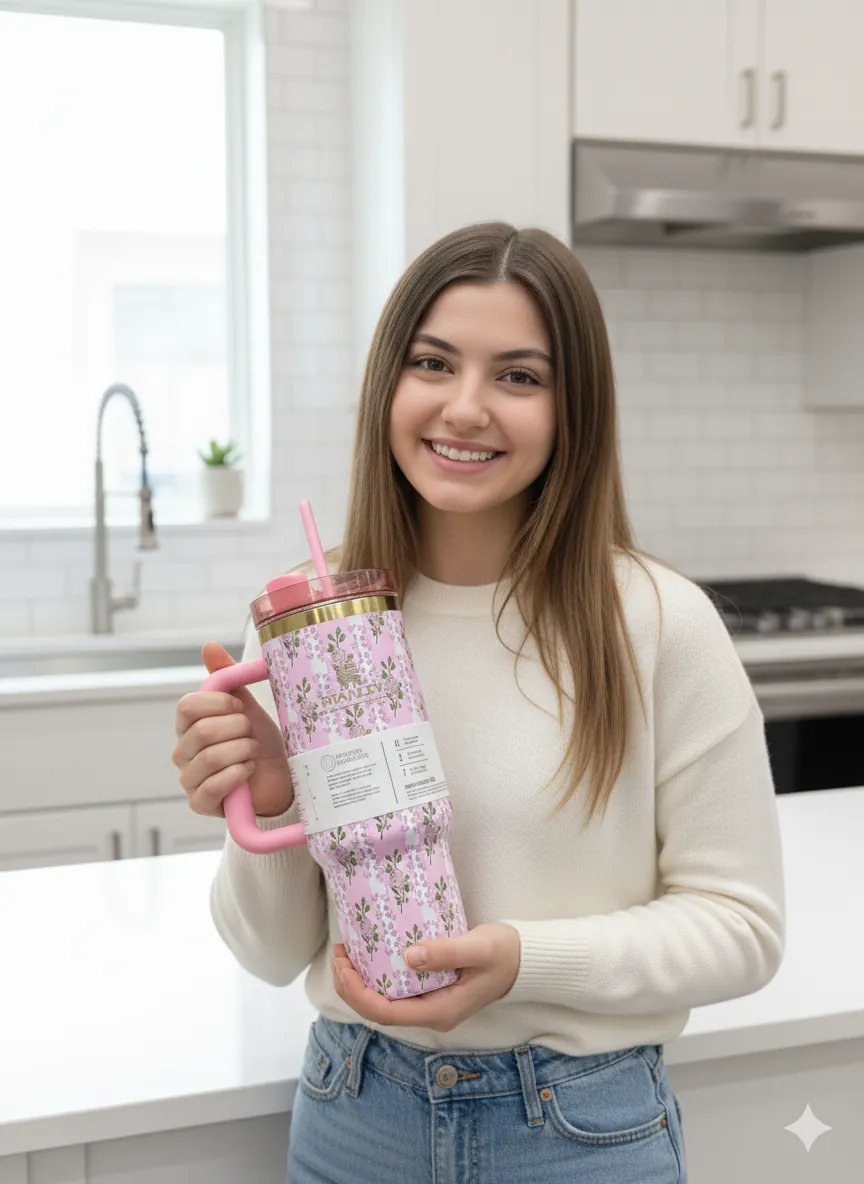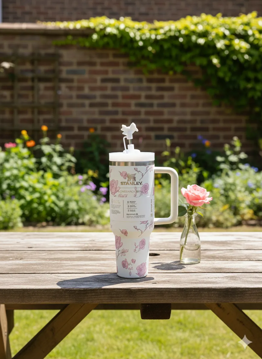 Elevate your hydration game with the stunning Flower Stanley Tumbler. This heavyweight, double-walled stainless steel tumbler is engineered to provide superior temperature retention, keeping your beverages icy cold or piping hot for extended periods.