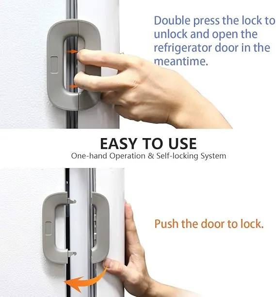 Perfect for homes, offices, hostels, and shops, this durable lock ensures maximum safety for children and secure food storage. The strong adhesive backing allows easy, tool-free installation on any smooth surface. Its compact and sleek design blends seamlessly with any fridge or cabinet.