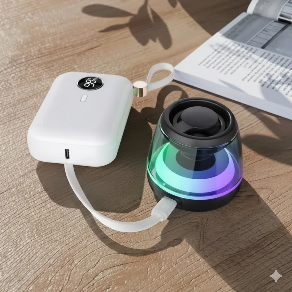 The speaker boasts vibrant RGB LED Ambient Lights that pulse and glow, creating an instant party atmosphere or a cool backdrop for your music. Despite its compact size, the speaker delivers surprisingly Loud and Clear Audio with solid bass. It connects quickly and reliably via Bluetooth to any smart device. Whether you're streaming music in the shower, watching a movie on your phone, or hosting a mini outdoor party, this rechargeable, lightweight speaker is the perfect sound companion.