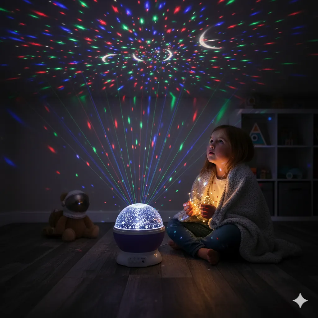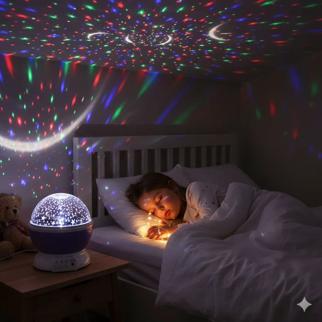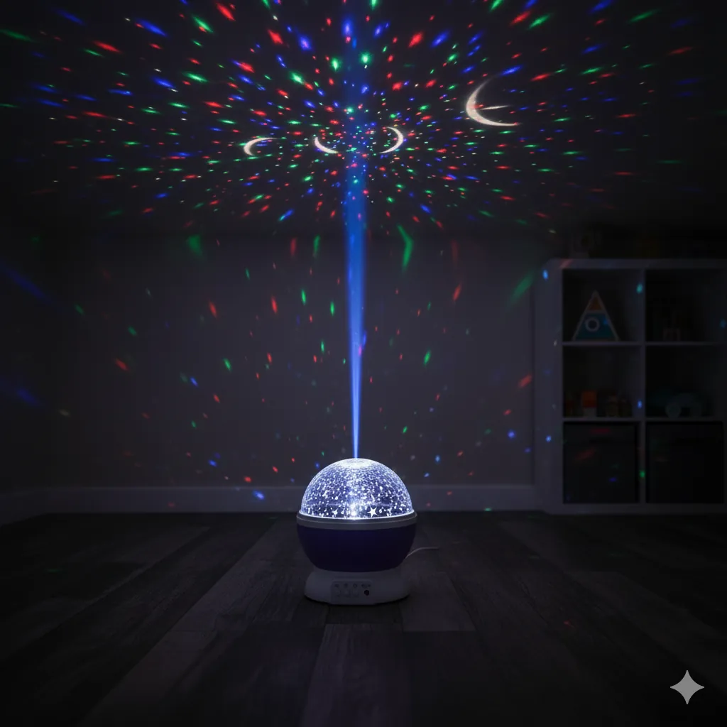 Galaxy Star Projector Night Light: The Ultimate Home Planetarium. This device is a Star Projector Night Light, designed to transform any space into a mesmerizing, personalized celestial haven. It utilizes LED and laser technology to project a stunning array of vibrant, multi-colored stars (in red, green, and blue) along with bright crescent moon shapes onto the ceiling and walls. The projection often features a gentle nebula or ocean wave effect, where the colors softly blend and swirl, providing a dynamic backdrop to the sharp pinpoints of light. Its compact, spherical design usually includes a 360-degree rotation function, allowing the star field to slowly drift across the room, which greatly enhances the immersive and calming experience. Widely used as a sleep aid for children to ease their fear of the dark and spark their imagination, it is equally popular among adults for creating a romantic, relaxing, or meditative atmosphere. Most versions are conveniently powered by USB and come equipped with essential features like multiple lighting modes, adjustable brightness, and an auto-off timer, making it a versatile and soothing addition to any bedroom or living space.