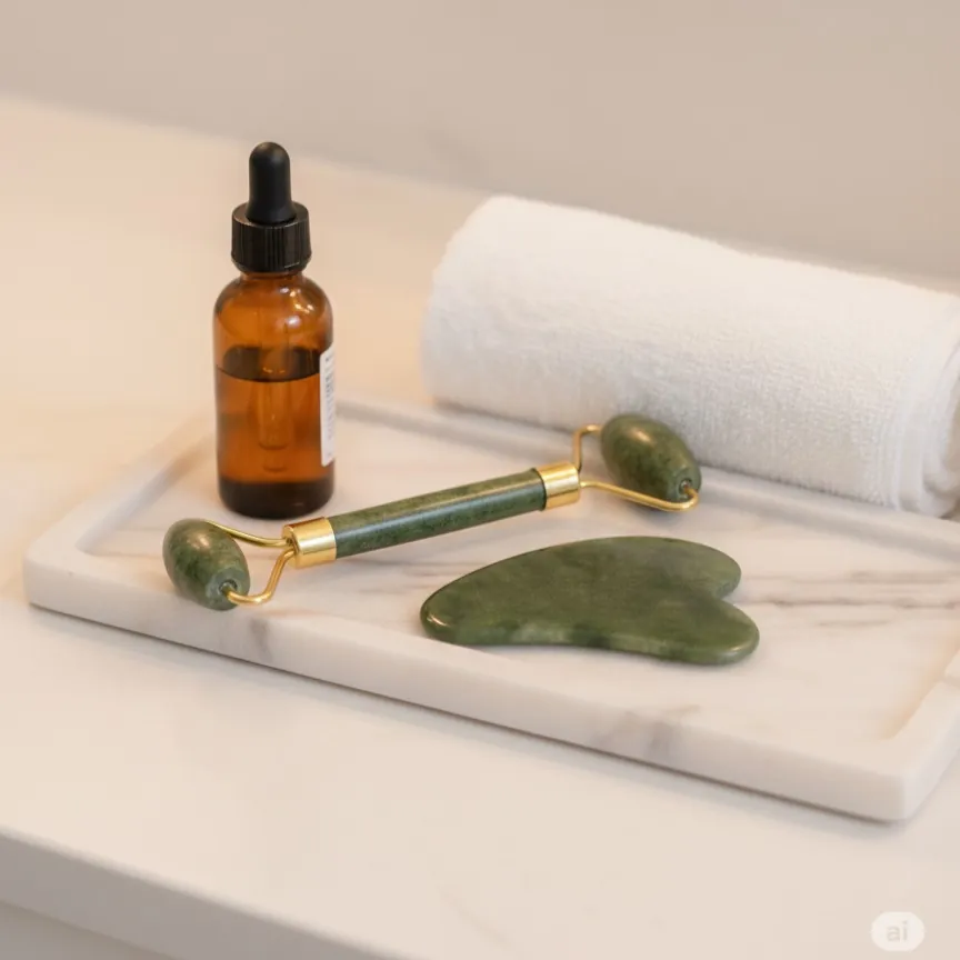 Genuine Jade Facial Roller & Gua Sha Massager Set | Anti-Aging & Face Sculpting Tool