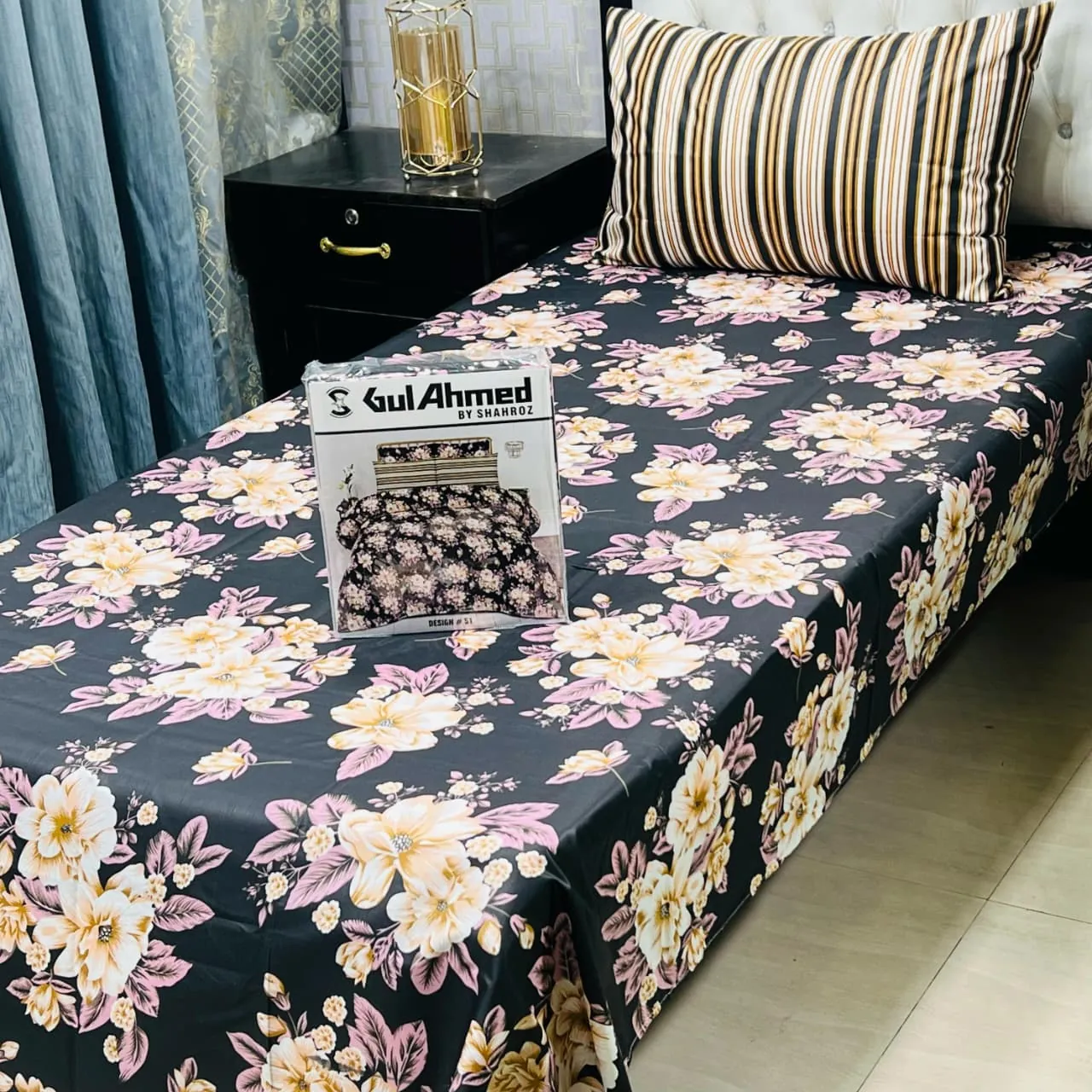 Gul Ahmed by Shahroz Cotton Single Bedsheet Pair - Fine Salonica Cotton - 4-Piece Set with Pillow Covers - Guaranteed Fast Colors by ARM Clothing Hub