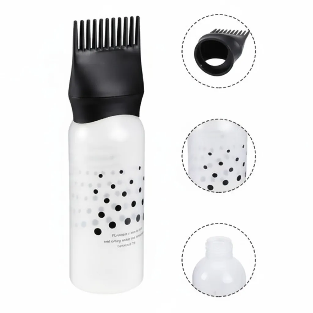 The unique comb attachment on the cap acts as a dual dispenser and styling tool, guiding the liquid through the teeth and onto your hair. The transparent body (with a polka-dot pattern) allows you to easily monitor the remaining product volume. Made from durable, reusable plastic, this bottle is a must-have for DIY hair coloring, scalp oil treatments, and precise hair washing. It makes the coloring process cleaner, faster, and more efficient.