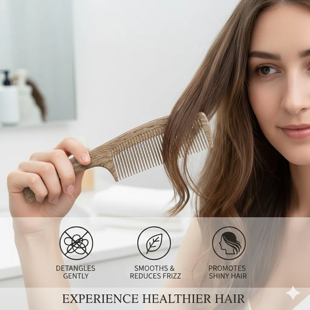 Unlike plastic, wood is a natural insulator that prevents static and frizz, making it perfect for all hair types—from curly and thick to fine and straight. Regular use stimulates the scalp’s pressure points, boosting blood circulation to the follicles and promoting natural hair growth. Its ergonomic handle ensures a comfortable grip, while the wood’s natural properties help combat dandruff and keep your scalp healthy.