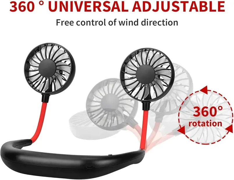 Experience ultimate summer comfort with this innovative hands-free neck fan. Its 360° universal adjustable design allows you to direct airflow exactly where you need it. With three adjustable speed levels and a lightweight, portable design, it's ideal for outdoor activities, travel, or simply staying cool at home. Rechargeable via USB, this neck fan offers convenience and lasting relief from the heat.