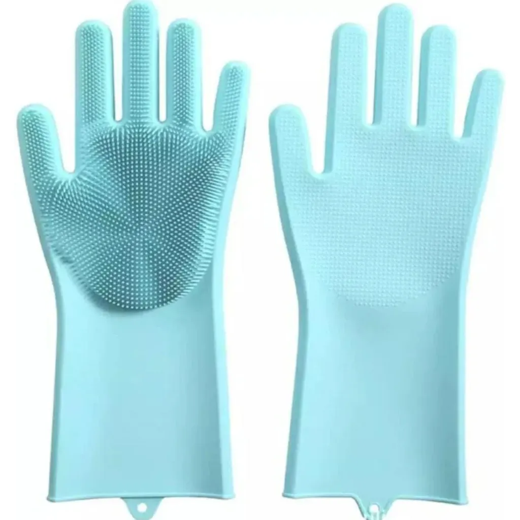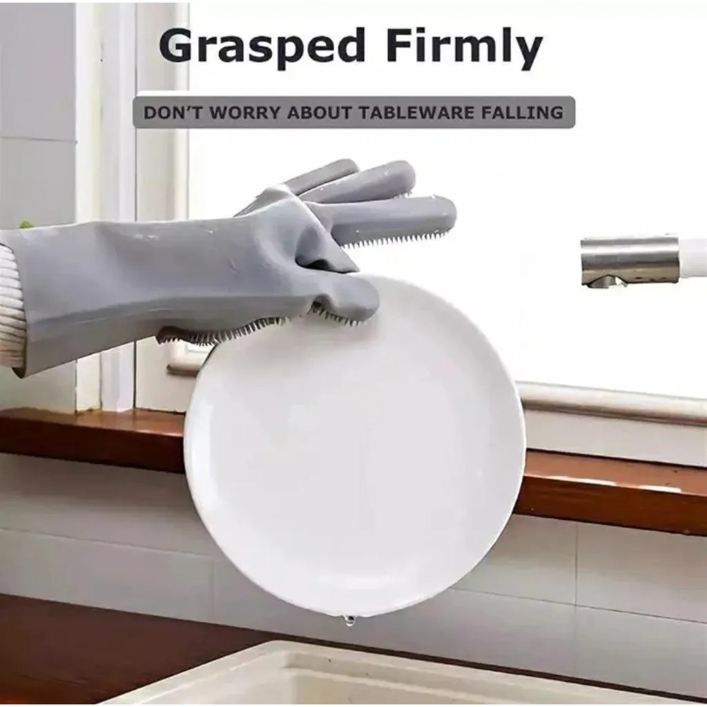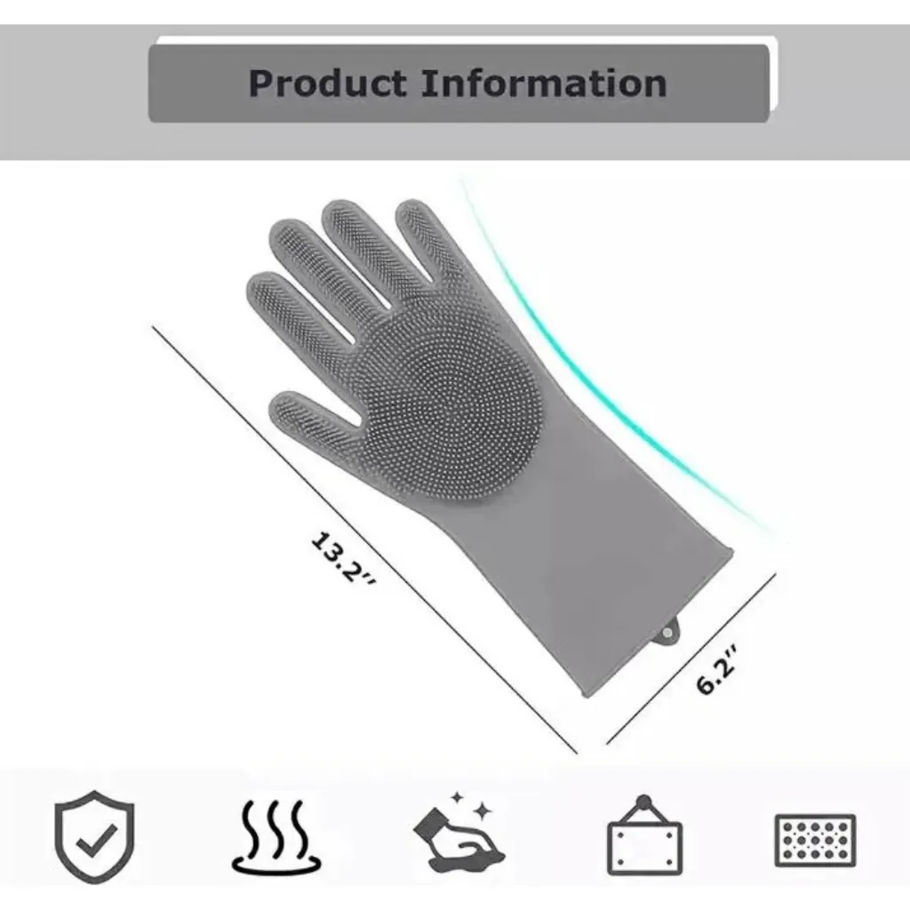 Upgrade your cleaning game with these Multi-Purpose Silicone Dishwashing Gloves! Made from food-grade silicone, these gloves feature built-in scrubbers that make it easy to clean dishes, fruits, bathroom surfaces, or even give your pets a bath.Thanks to their heat resistance, you can also use them to safely handle hot trays, pans, and oven dishes. They're waterproof, non-slip, and easy to rinse and reuse – saving you time and money!