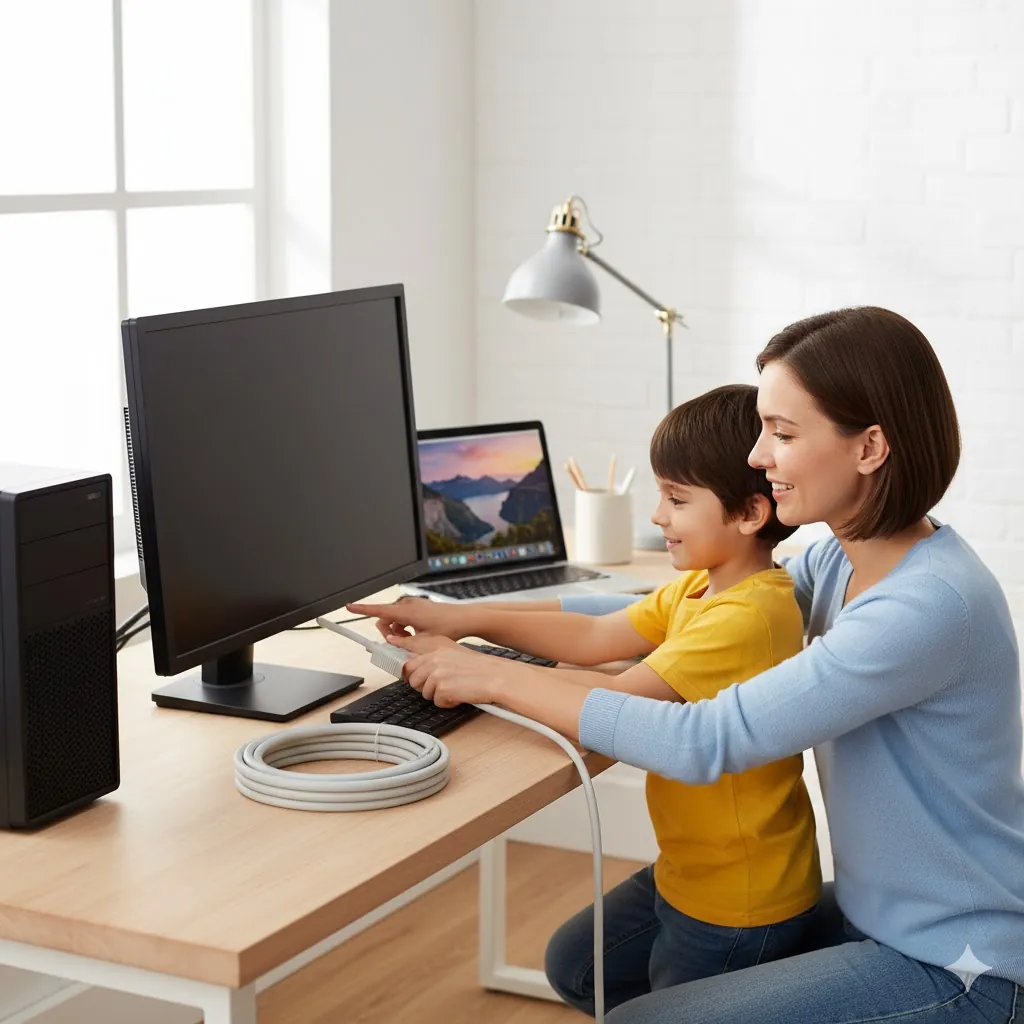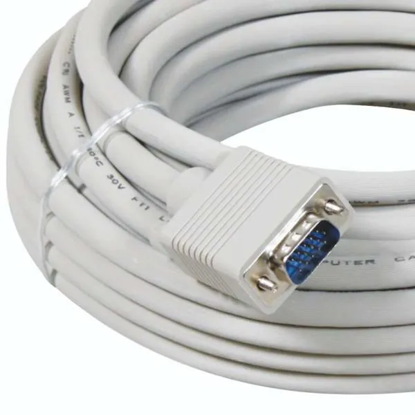 The VGA cable shown is an essential accessory for extending or connecting your devices. Featuring a coiled design for neat storage and reduced clutter, this cable is built for both durability and performance. It has the standard 15-pin male VGA connector on both ends, complete with secure thumb screws to ensure a tight, reliable connection that won't easily pull out.
