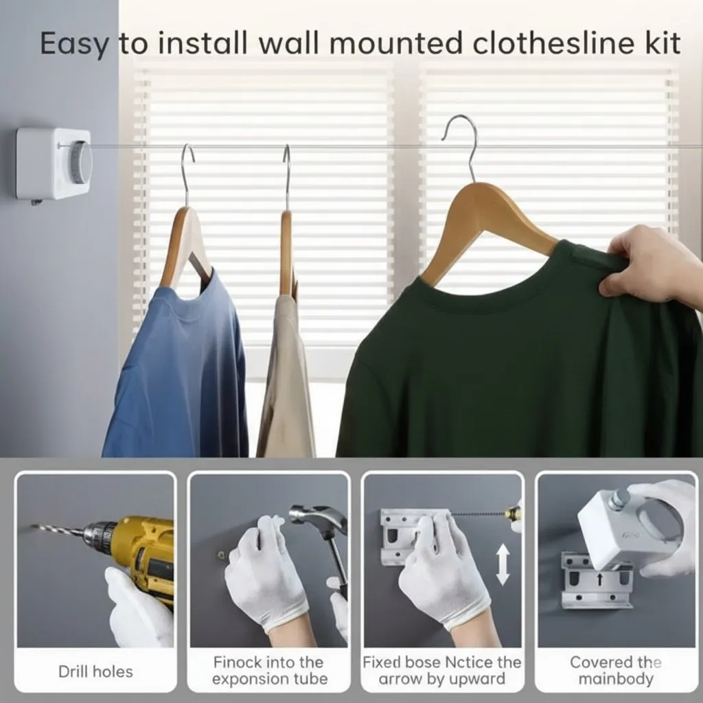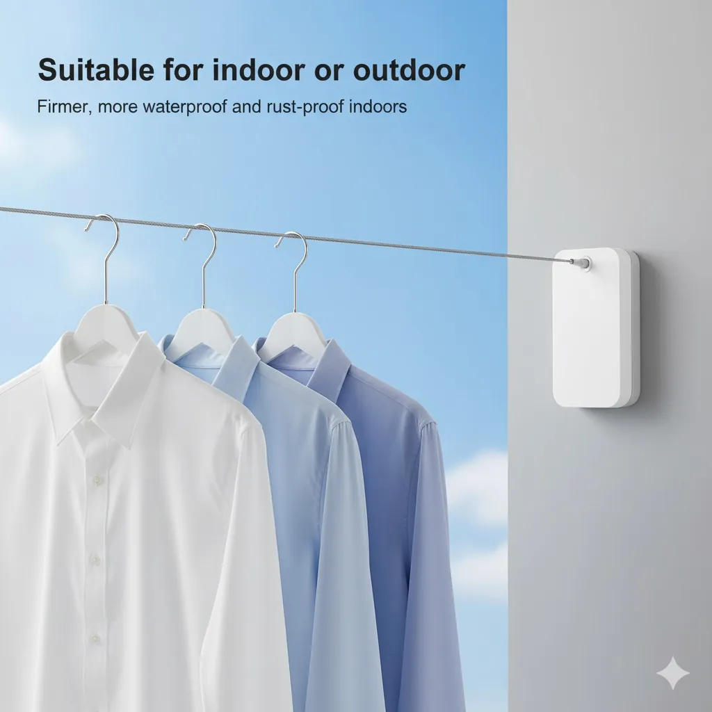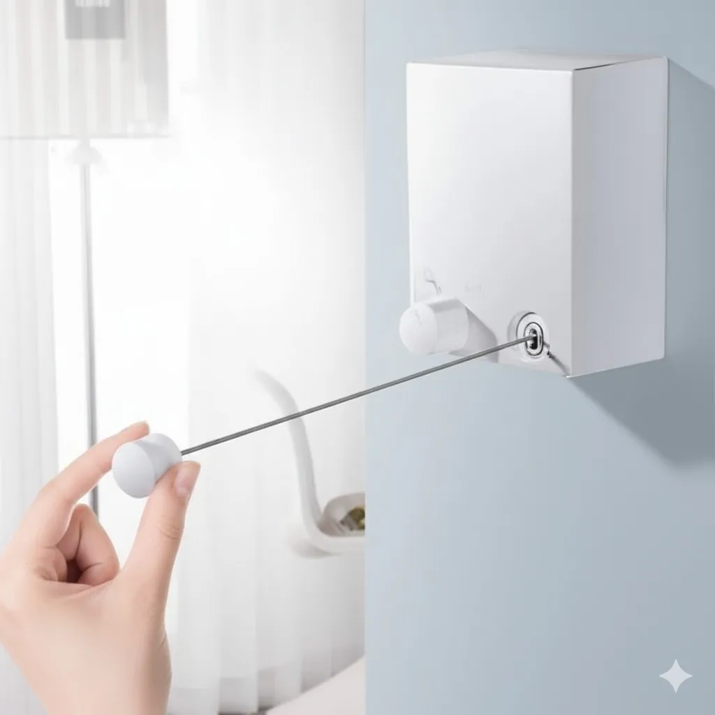 Featuring a heavy-duty, durable [Stainless Steel/Nylon] cable that automatically retracts into its sleek, minimal [White ABS or Aluminum] casing when not in use, it keeps your space neat and tidy. The clothesline extends smoothly to [Specify Length, e.g., 4.2 meters / 13.8 feet] and can support a substantial amount of weight, perfect for drying clothes, towels, or bedsheets. Installation is quick and simple (either drilling or no-drill adhesive option, depending on the model). The locking mechanism ensures the line remains taut and secure during use, preventing sagging. This discreet design blends seamlessly with any decor while offering maximum functionality for your daily laundry needs.