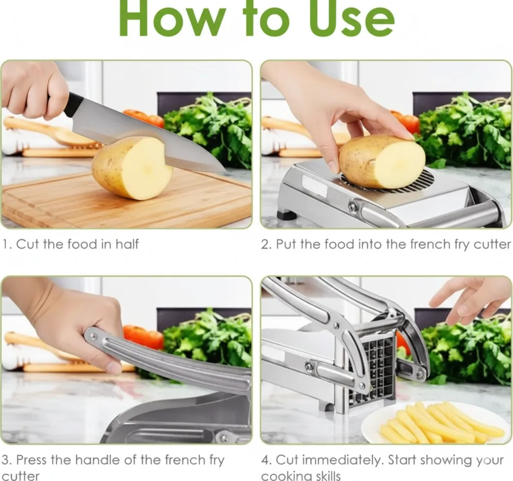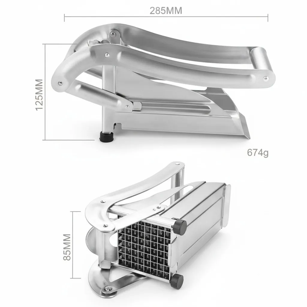 It typically comes with multiple interchangeable blade sizes (e.g., 9mm and 12mm) to suit different needs, whether you prefer thick-cut chips or thin fries. Designed for safety and stability, it often features a strong suction cup base that locks firmly onto your countertop, preventing slippage during use. This tool is a time-saver for meal prep, enabling you to enjoy fresh, homemade fries faster than ever.
