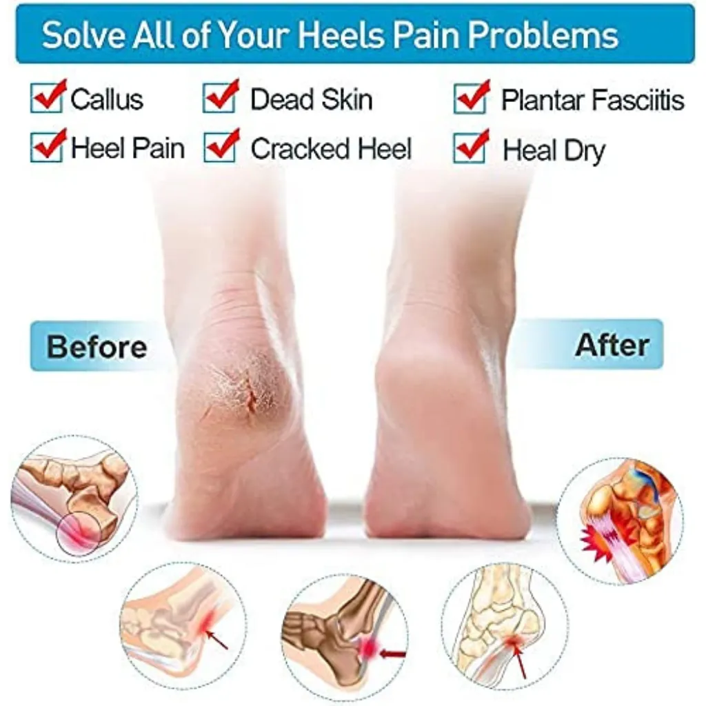 Restore your heels with Heel Anti-Crack Repair Pads, a set of soft silicone foot pads crafted to heal dry cracks and calluses effectively. Packaged in a convenient box, these peach-colored pads provide a cushioned barrier that locks in moisture while protecting sensitive skin. Ideal for daily wear, they reduce discomfort and promote healing with their flexible, skin-friendly design. Easy to apply and remove, these reusable pads are perfect for anyone seeking relief from rough heels, whether at home or on the go. A must-have for foot care enthusiasts.