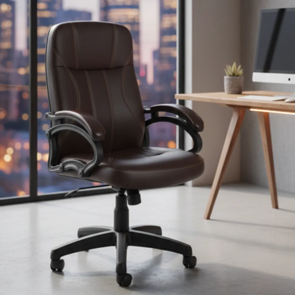The Office Star Bonded Leather High Back Executive Chair is designed to provide maximum comfort, professional style, and long-lasting durability for office environments. Finished in a rich chocolate color bonded leather, this chair adds a luxurious and elegant touch to any workspace.
