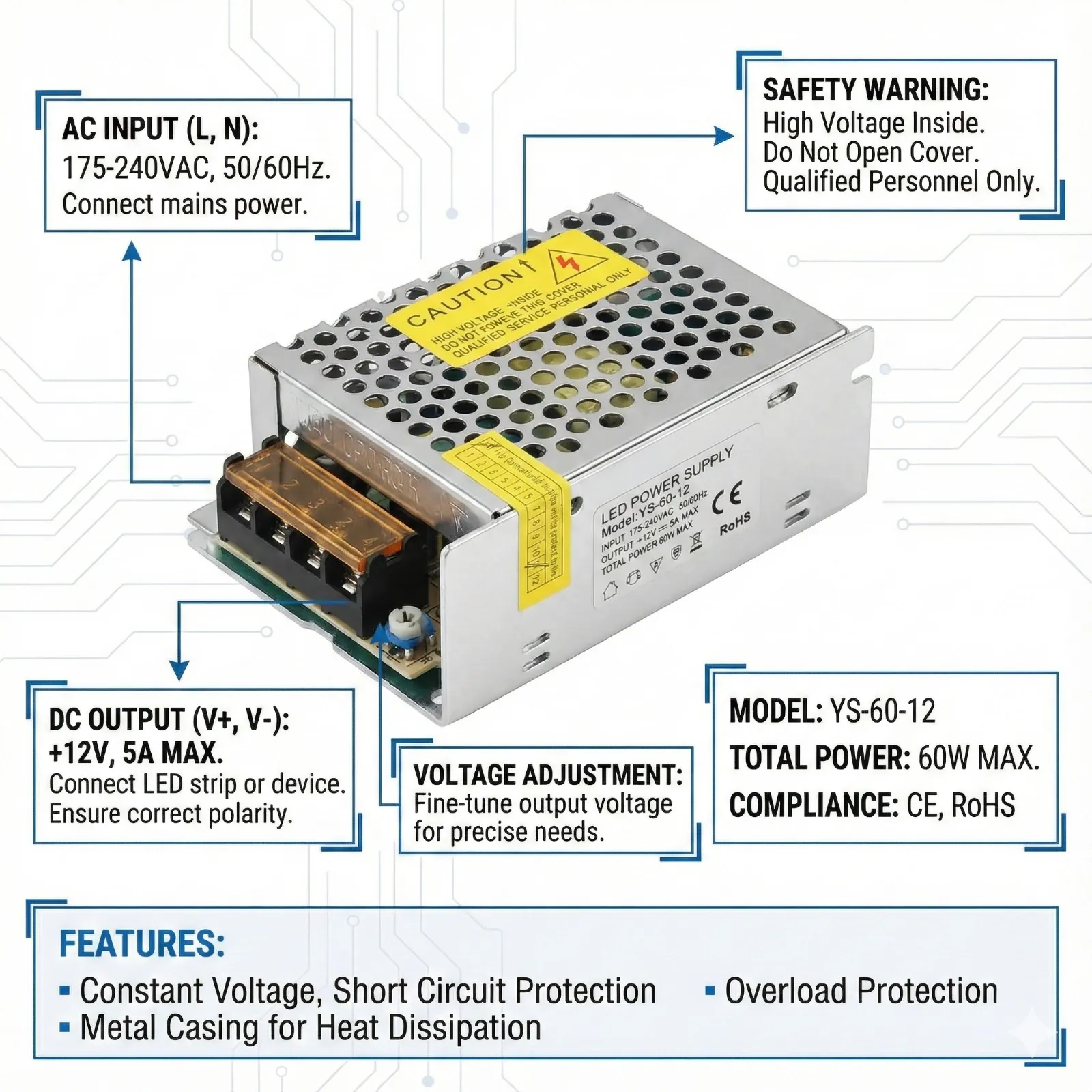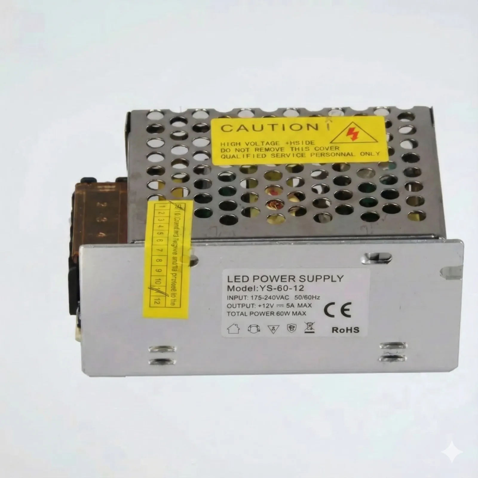 High-Performance 12V 5A 60W Switching Mode Power Supply (SMPS) | Reliable, Compact & Protected for LED Lighting, CCTV, and Electronics