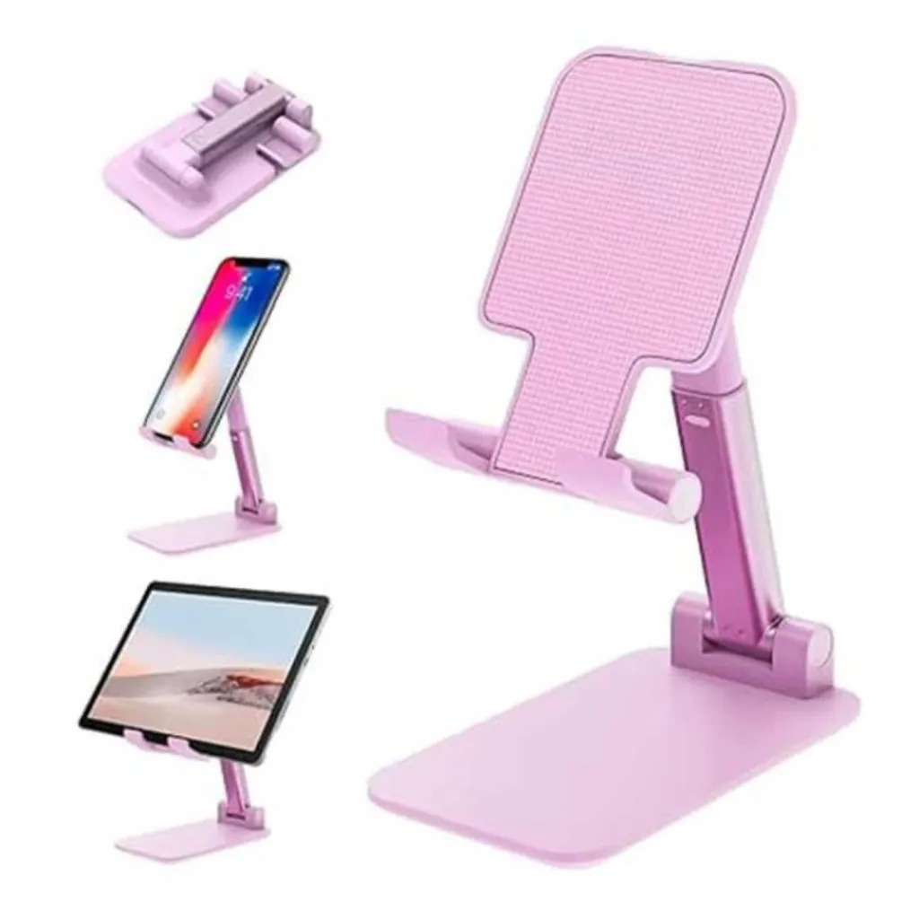 Upgrade your desk setup with our High-Quality Adjustable & Foldable Mobile Stand. Designed for comfort and convenience, it features multi-angle adjustment, textured anti-slip surface, and a foldable build for easy portability. Whether you're working, streaming, or gaming, this stand keeps your phone stable and stylish. Comes in vibrant colors like pink, mint green, and black – perfect for personal use or gifting.