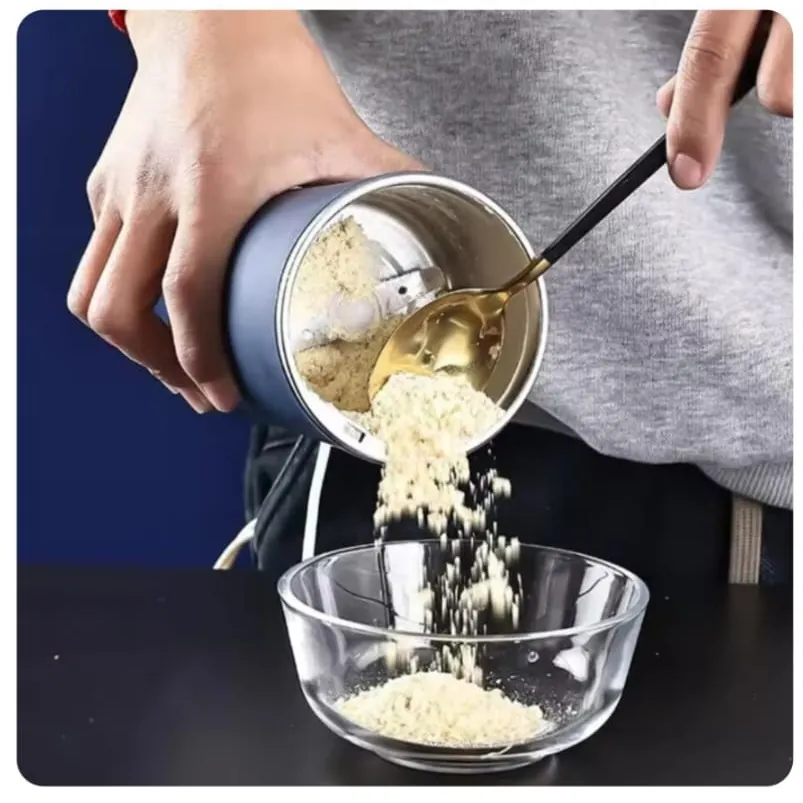 Bring the freshest flavors to your cooking and coffee with our Electric Spice and Grain Grinder. This high-performance appliance is designed to quickly and efficiently pulverize a variety of dry ingredients, including coffee beans, nuts, seeds, dry beans, and spices (as shown in the image).