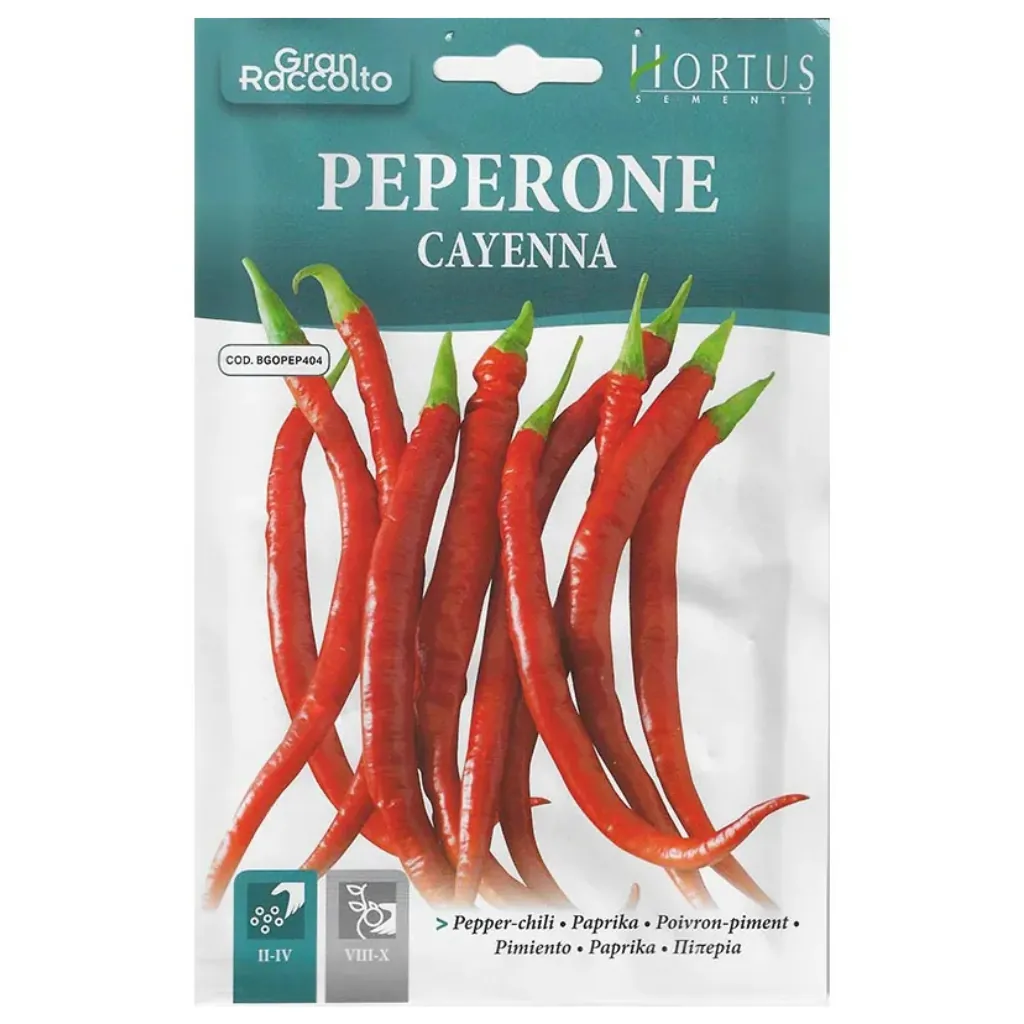 Grow spicy, flavorful, and high-yield chili peppers at home with Hortus Peperone Cayenna Pepper Seeds 2.5gm. This premium Italian chili variety is famous for producing long, slender, vibrant red cayenne peppers loaded with heat and rich flavor. Each packet contains approximately 300–325 high-quality seeds, ensuring excellent germination and consistent plant growth.