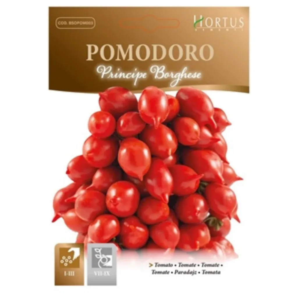 Grow premium-quality salad tomatoes with Hortus Pomodoro Principe Borghese Tomato Seeds 1gm, a renowned Italian heirloom variety famous for its small, round, intensely red fruits. Each tomato features a slight point at the base and grows in attractive clusters, making it perfect for fresh salads, garnishing, and home culinary use.