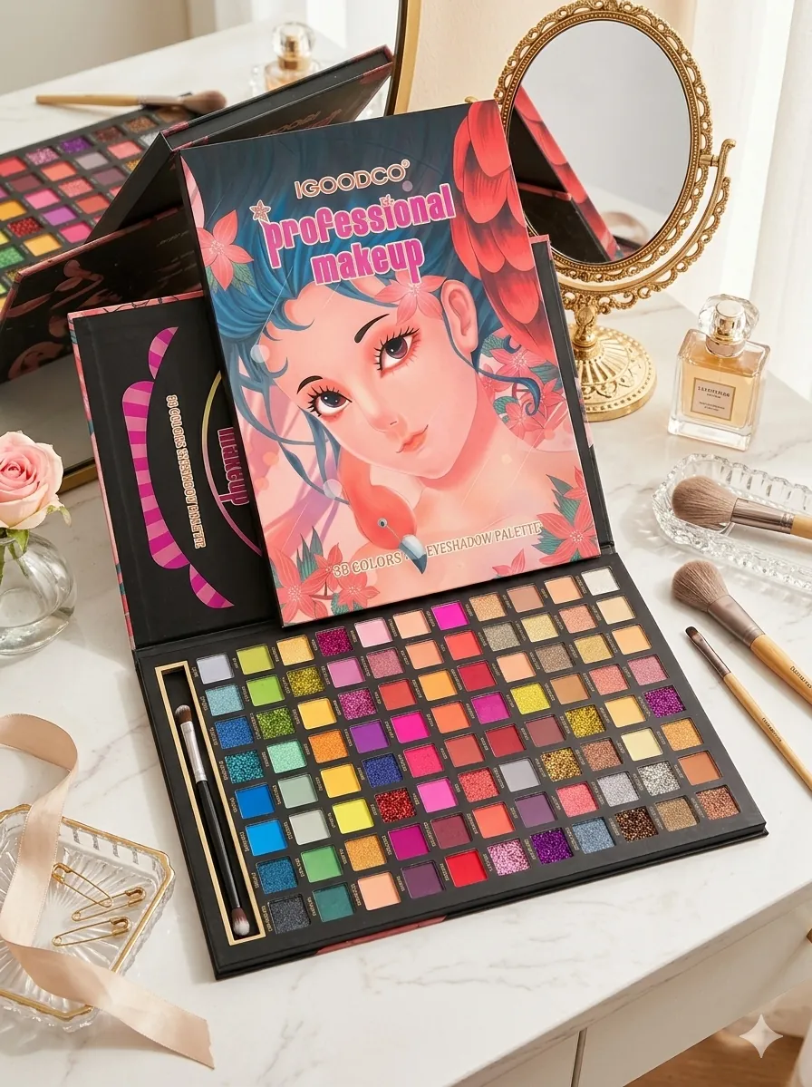 Elevate your artistry with the IGOODCO Professional Makeup 80 Colors Eyeshadow Palette. This comprehensive palette features an incredible selection of highly pigmented shades, including vibrant mattes, dazzling shimmers, and sparkling glitters, designed to suit every mood and occasion. From everyday natural looks to dramatic evening glam, the smooth, blendable formulas ensure effortless application and long-lasting wear. Each palette comes with a convenient application brush, making it a perfect addition to any makeup collection. Unleash your creativity and achieve professional results with this versatile eyeshadow kit.
