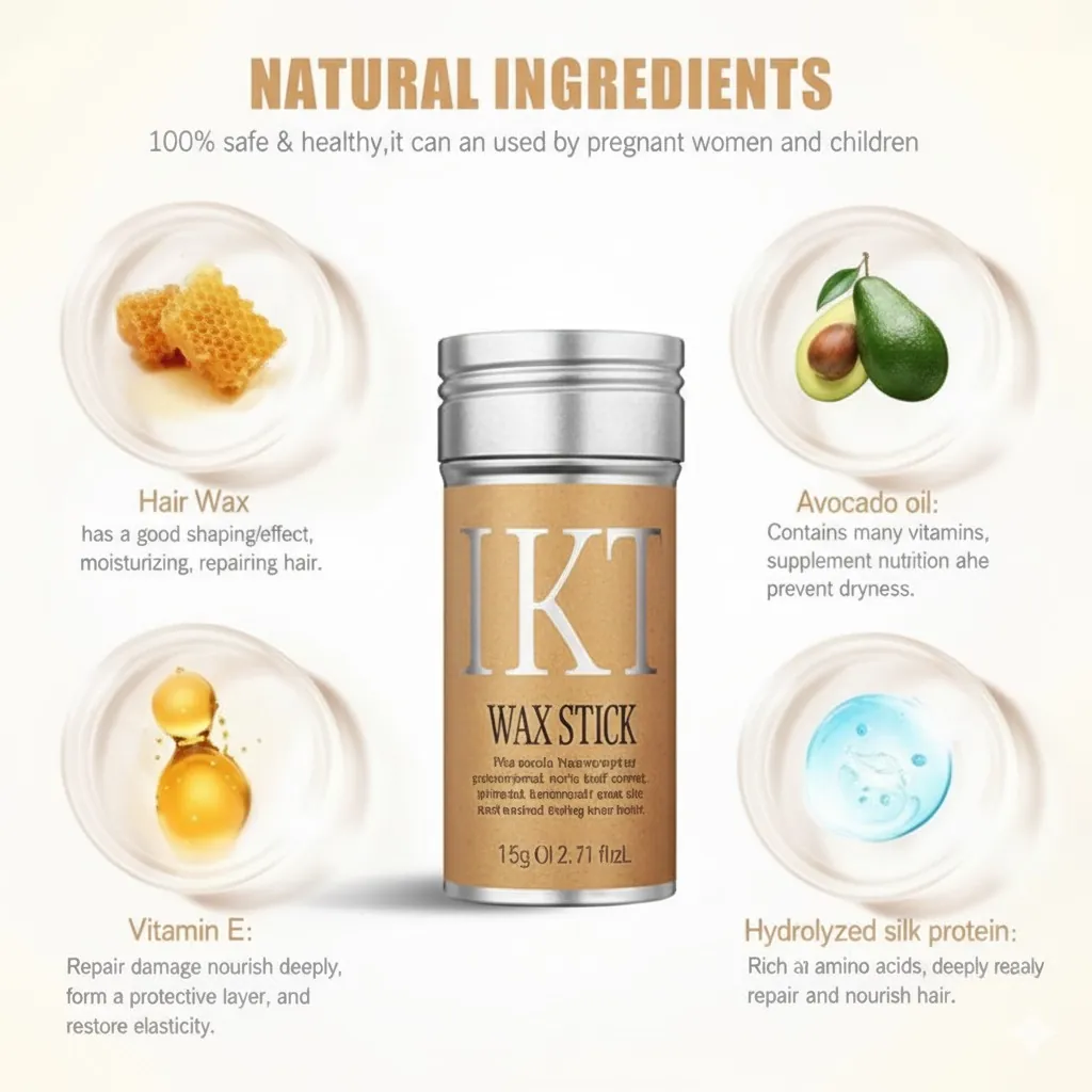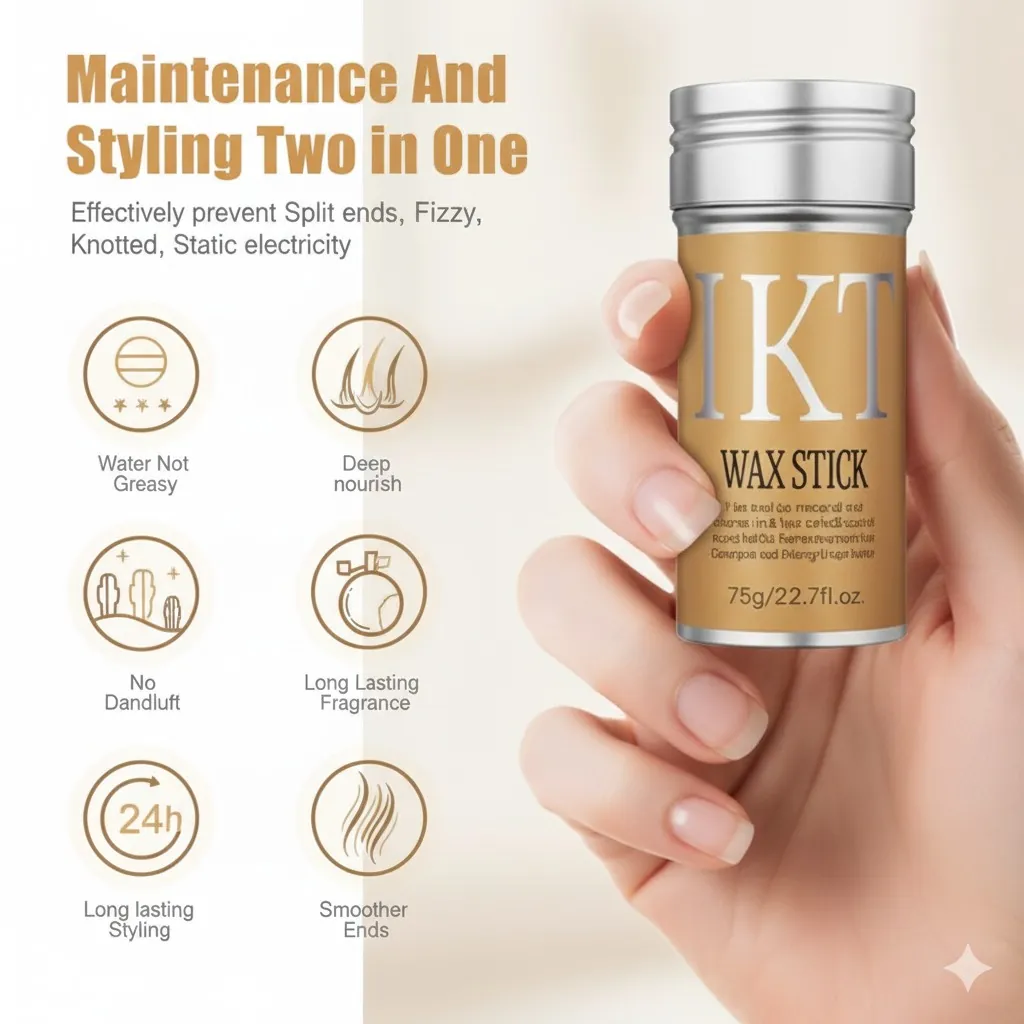 Achieve perfect hair effortlessly with the IKT Hair Wax Stick, your ultimate "Maintenance and Styling Two in One" solution. This innovative wax stick is expertly formulated to effectively combat common hair concerns such as split ends, frizzy hair, knotted strands, and static electricity.