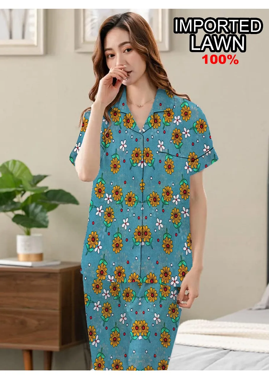 Imported Lawn Night Suit for Women – 2 Piece Pajama Set | Comfortable Summer Sleepwear (M & L Sizes)