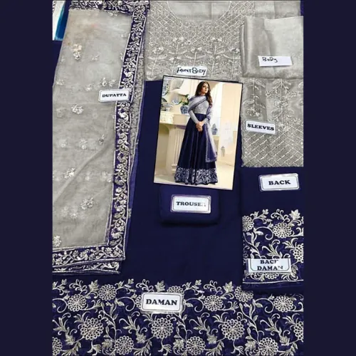 Balancing style and comfort, the plain malai trouser creates a graceful silhouette. The highlight of the ensemble is the net dupatta, delicately embroidered and finished with stitched lace, adding sophistication and charm. This timeless design is an ideal choice for weddings, festive occasions, or evening wear.