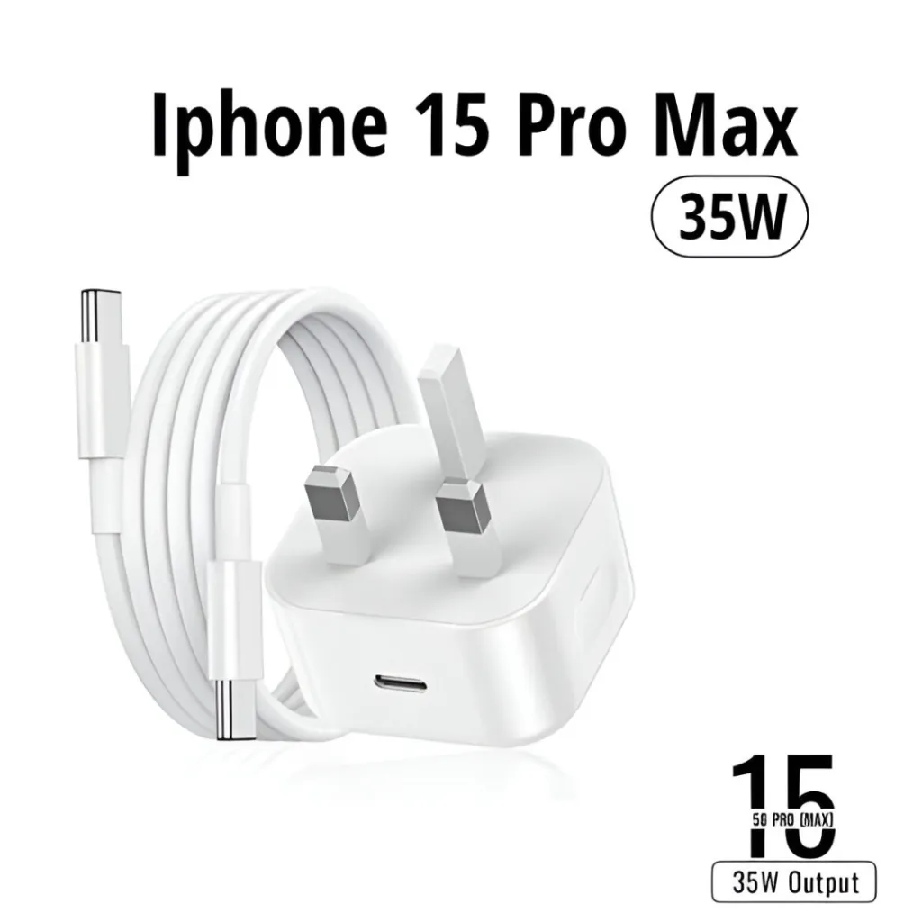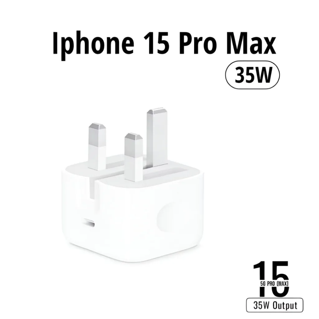 Power up your Apple devices faster and smarter with the iPhone 15 Pro Max 35W USB-C Power Adapter (UK 3-Pin) — the ultimate solution for high-speed, safe, and efficient charging. Engineered with the latest PD 3.0 (Power Delivery) and GaN (Gallium Nitride) technology, this 35W fast charger delivers powerful performance in a compact design while keeping heat under control for enhanced safety.