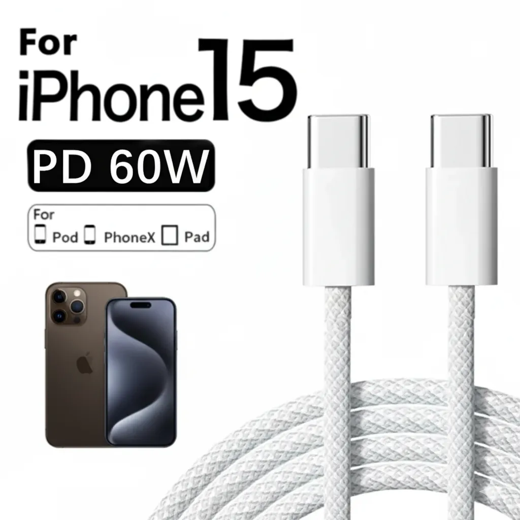 Charge faster and smarter with the PD 60W Type-C to Type-C Nylon Cable, specially designed for the iPhone 15 Pro Max and other USB-C devices.