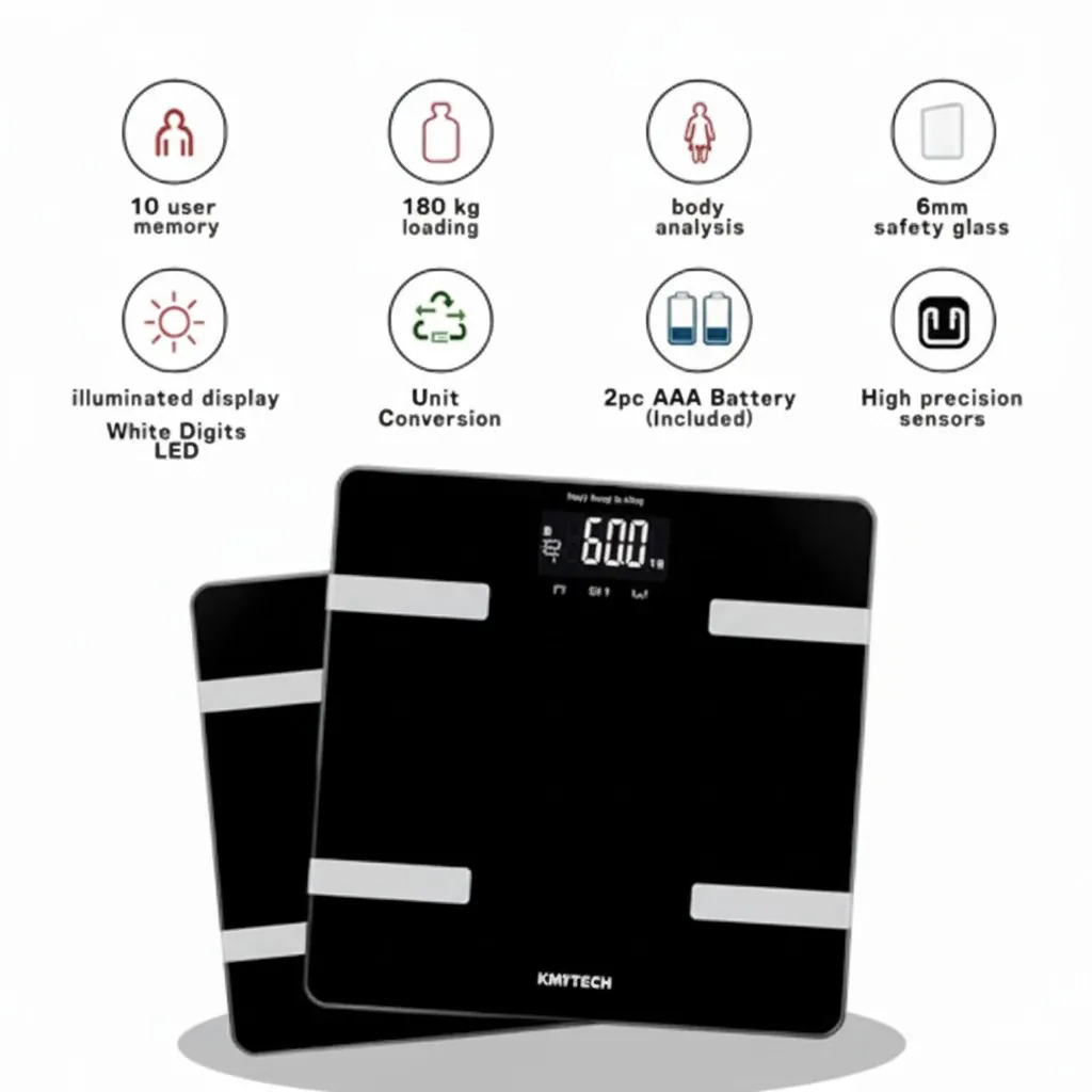 iScale High-Accuracy Electronic Bathroom Scale – 180Kg Max Capacity, Black Tempered Glass Body Weight Scale with Units Switchable & Smart Features.