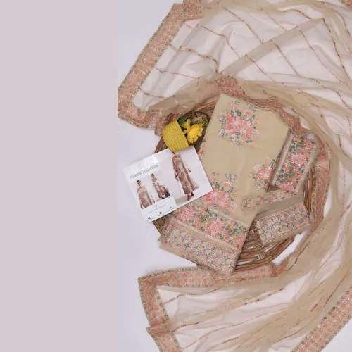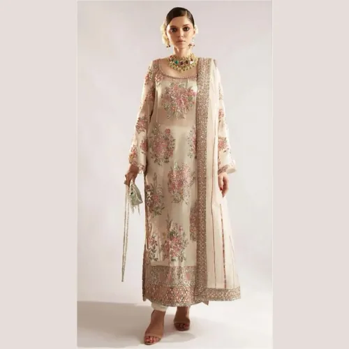 Ivory Pure Organza Floral & Sequin Embroidered Suit | Pakistani Wedding Wear with Cutwork Dupatta. Step into timeless beauty with this magnificent Ivory dress from our latest Wedding and Party Wear Collection. Crafted from 100% Original Pure Organza, this unstitched ensemble radiates sheer elegance and premium quality. The chosen Ivory color provides a sophisticated and versatile base, perfect for showcasing the intricate details.