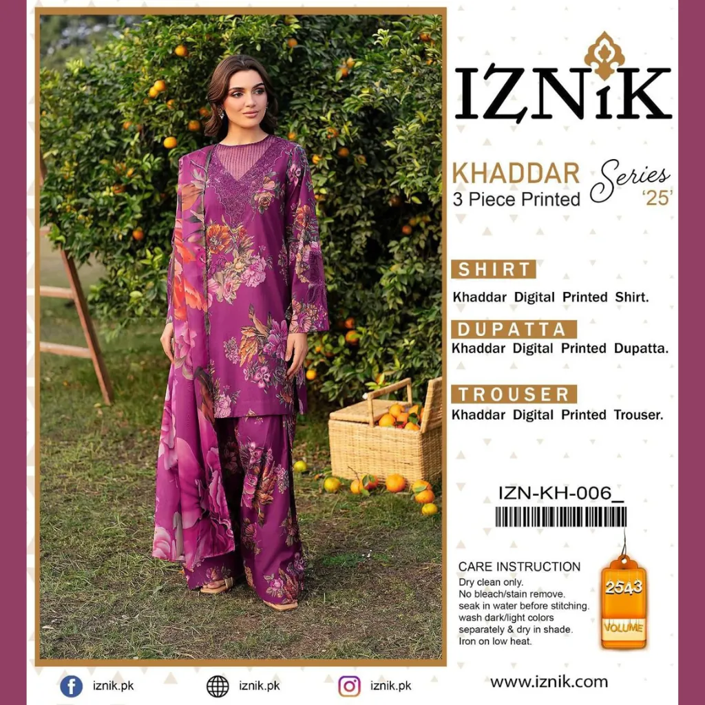 Elevate your winter wardrobe with Iznikโs Khaddar Printed Unstitched 3 Piece Collection. Crafted with premium quality khaddar, this ensemble blends warmth, comfort, and timeless elegance. Featuring a beautifully printed shirt, matching trouser, and coordinating dupatta, it is the perfect choice for everyday wear and seasonal gatherings. Designed for the modern woman who values both style and practicality.