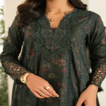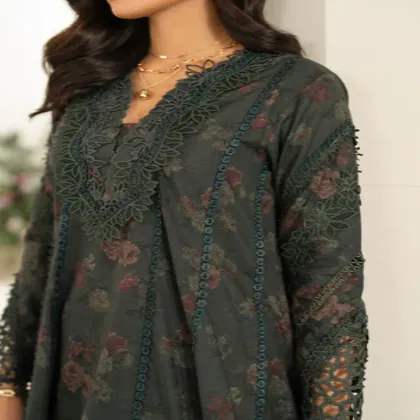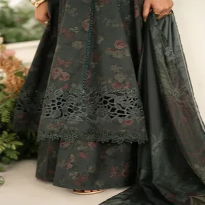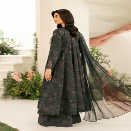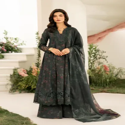 IZNIK Linen Collection | 3-Piece Unstitched Suit | Dark Grey Floral Print. This stunning 3-piece unstitched suit from IZNIK's Linen Collection is crafted from a high-quality printed linen, ensuring both comfort and style. The design features a delicate floral print on a dark grey background, creating a sophisticated and graceful aesthetic. The set includes a printed linen shirt, a printed dupatta, and printed trousers, giving you the freedom to customize your perfect fit for any occasion. This is a classic and elegant addition to your wardrobe.