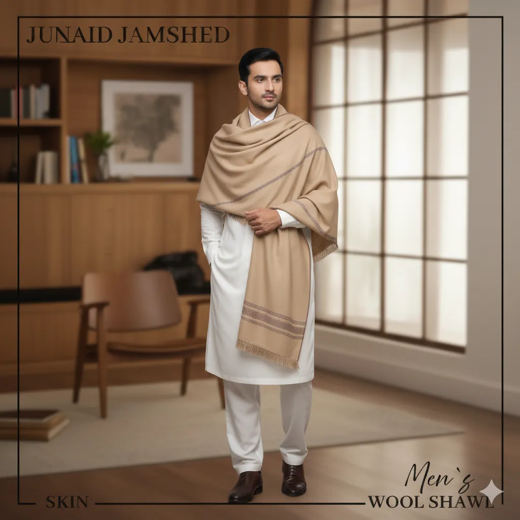 J. Junaid Jamshed Premium Men's Winter Wool Shawl | Available in Multiple Colors | Guaranteed Pure Suti Wool