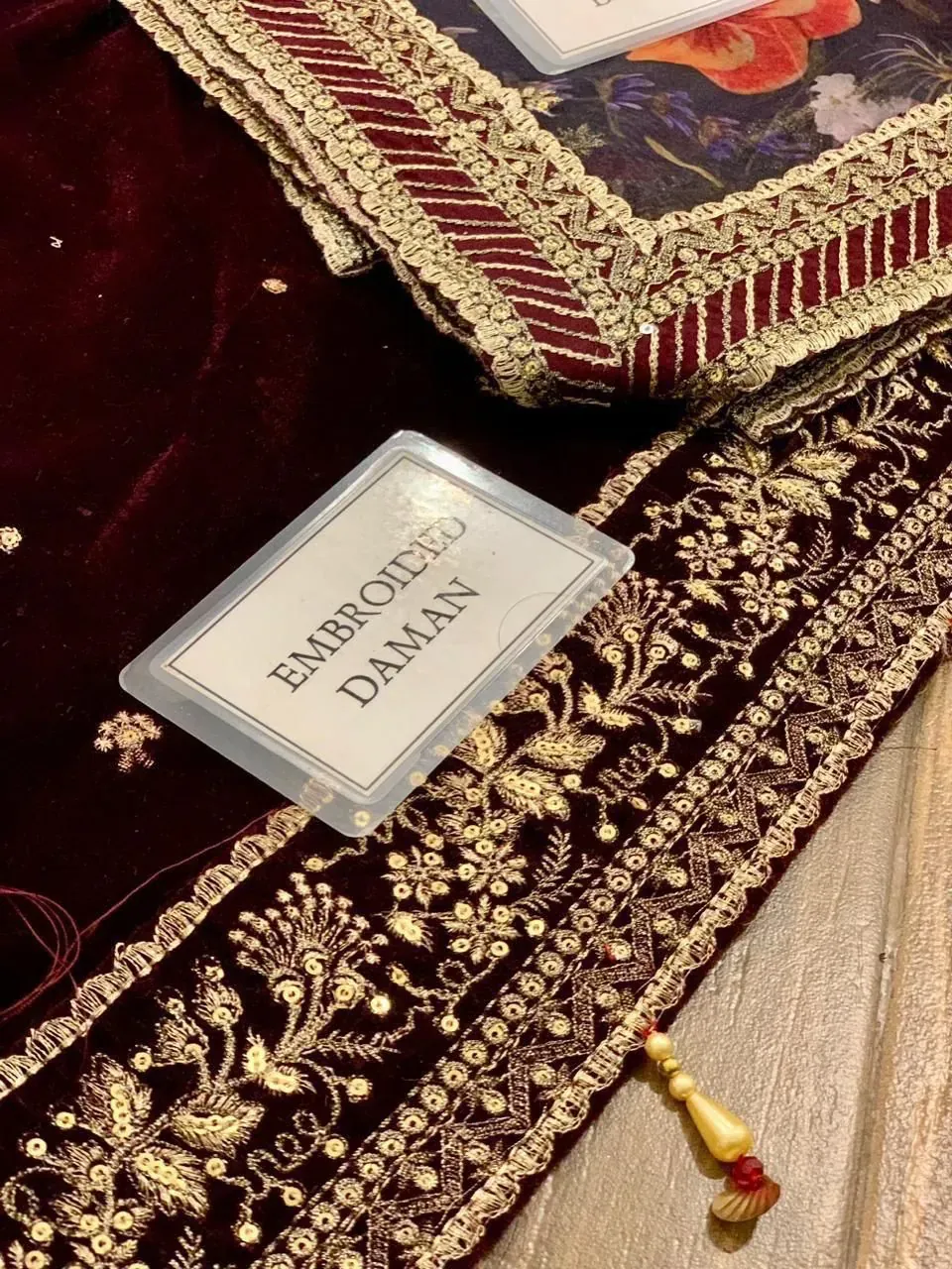 JAZMINE Velvet 3-Piece Suit: Heavy Embroidery with Digital Organza Dupatta