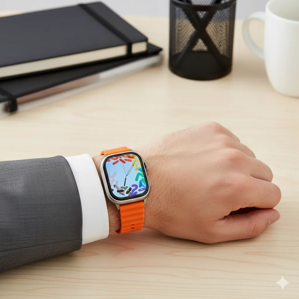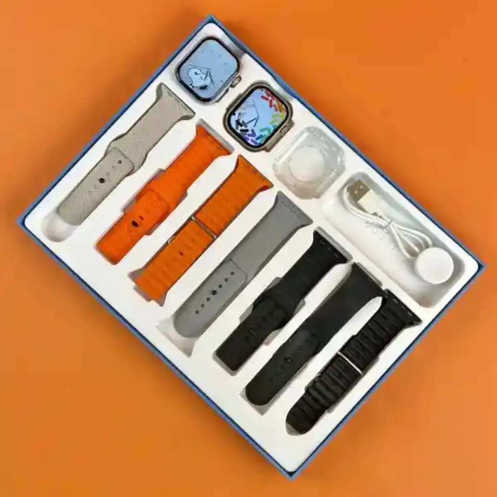 This smartwatch includes 7 interchangeable straps and 1 protective silicone case, letting you personalize your style for every occasion — whether sporty, casual, or formal.