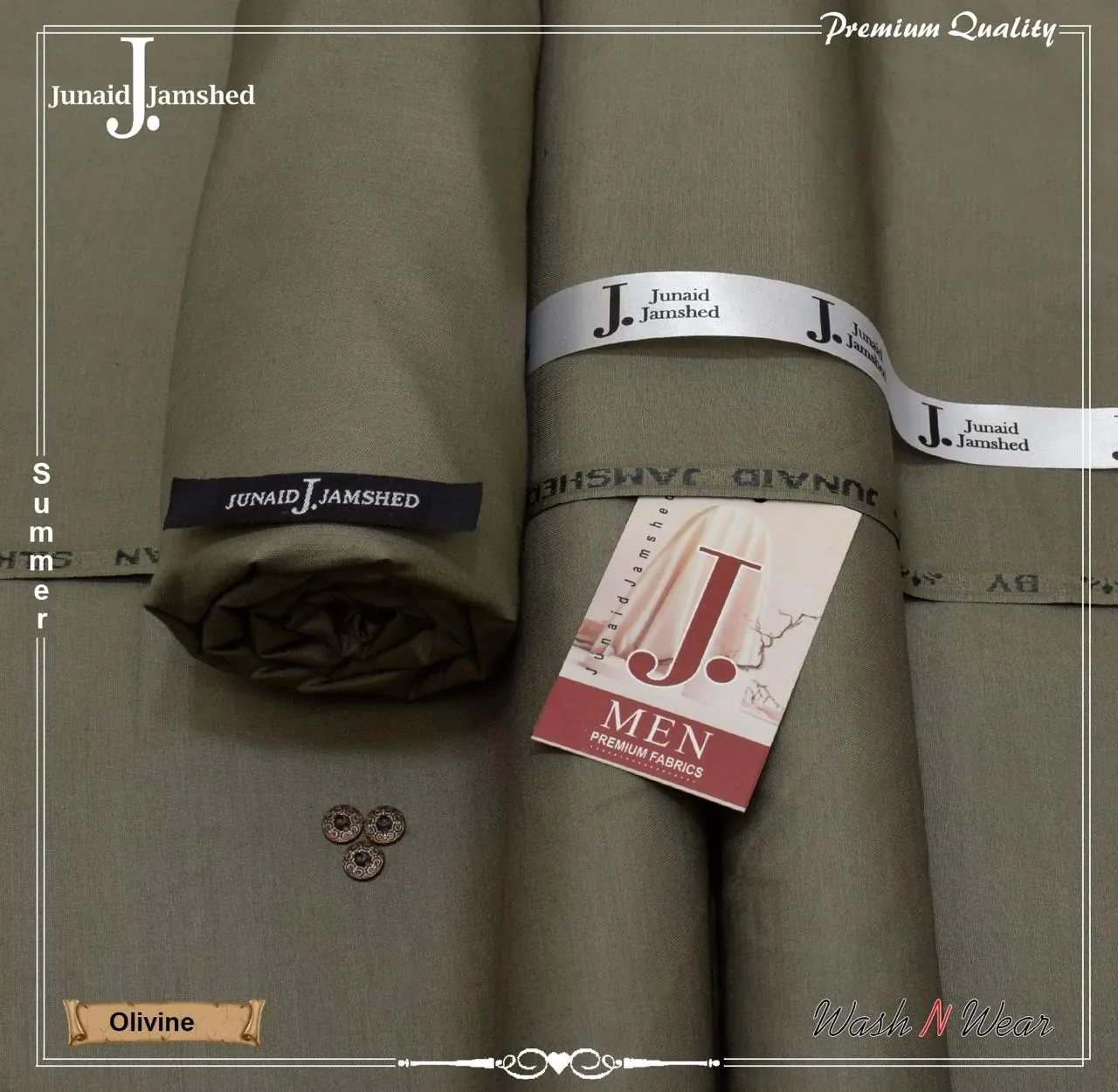 Discover the new Junaid Jamshed Men's Unstitched Premium Wash N Wear Fabric, a must-have from the Summer 2025 collection. This high-quality fabric is designed for comfort and durability, making it ideal for the summer season. The unstitched fabric allows for a perfect, customized fit, ensuring you look and feel your best .Each piece comes with the authentic Junaid Jamshed branding and includes stylish buttons to complete your outfit. The "Wash N Wear" feature means easy maintenance, keeping your fabric looking crisp and new with minimal effort. Elevate your wardrobe with this premium quality fabric, whether for daily wear or special occasions.