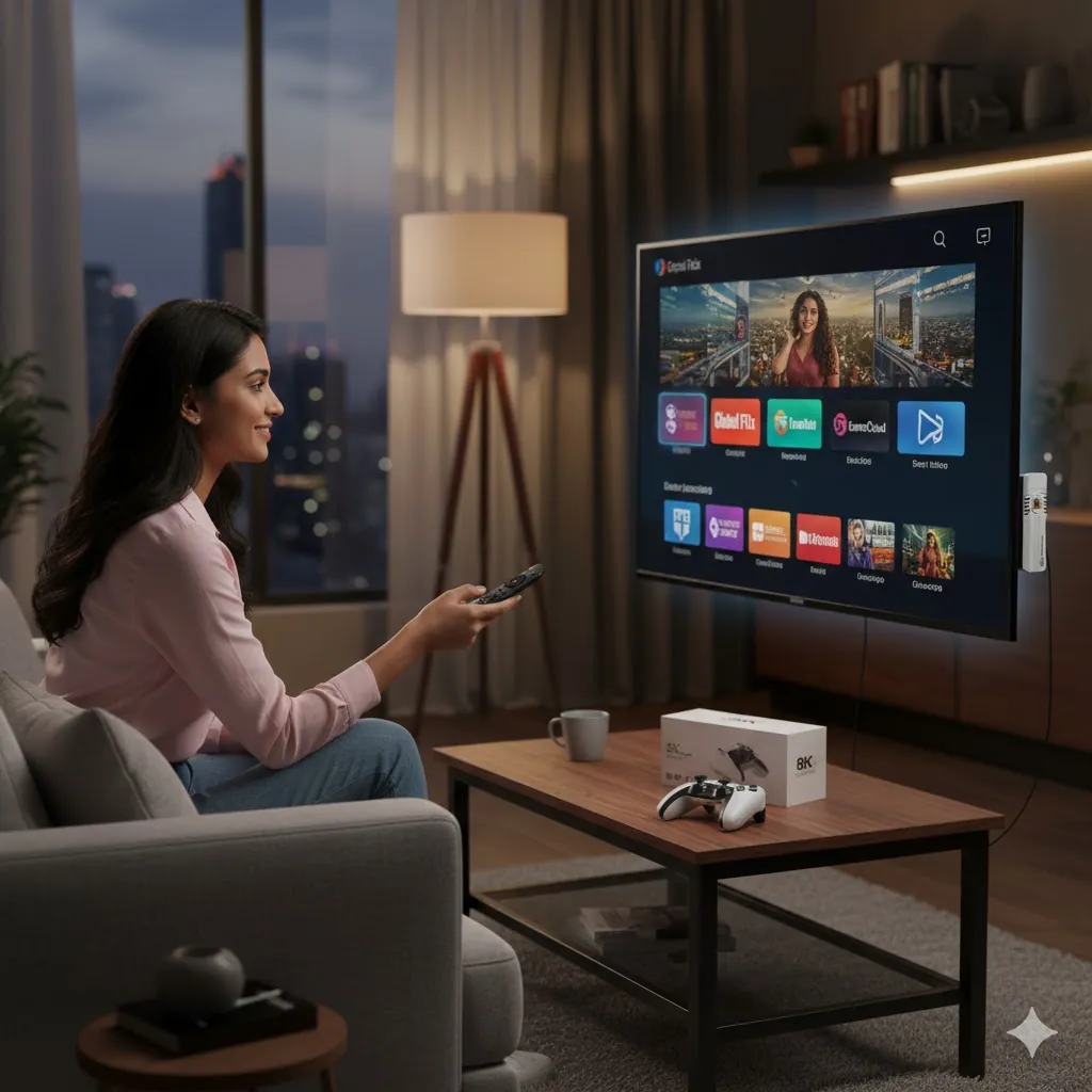 The K8 Pro 8K HD TV Classic Game Stick is an advanced two-in-one entertainment system, combining a massive retro gaming console with a functional Android 12.1 Smart TV Box. This console allows for seamless switching between a dedicated Linux-based gaming emulator system (EmuELEC) and the Android 12.1 ATV interface for streaming media, browsing, and installing apps.