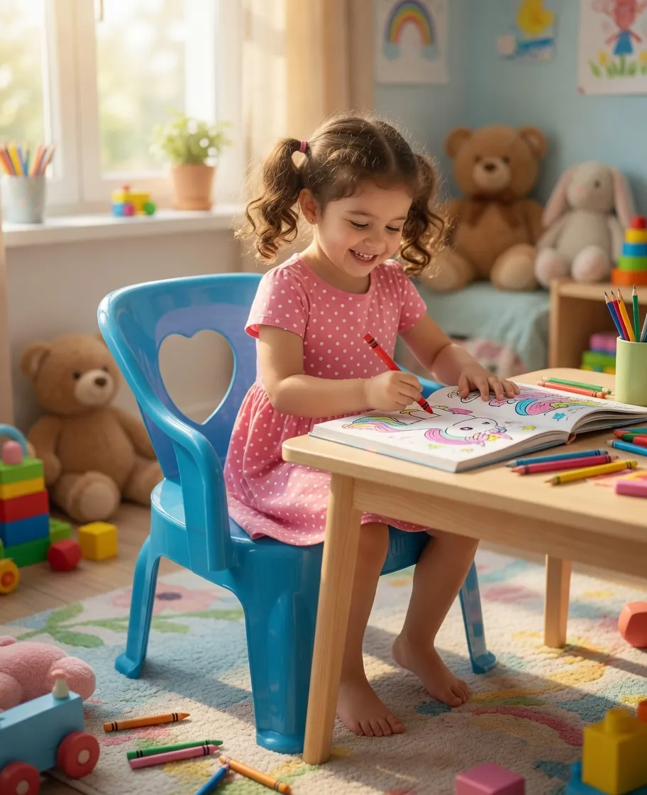 The best part? It has a lovely heart-shaped cutout on the back, making it look special in any room. It is very light, so your child can move it around on their own. Whether they are drawing, playing with toys, having a snack, or doing school work, this chair is always ready. It is also completely waterproof and very simple to wipe clean with a cloth, so you never have to worry about spills. Make your child’s space happy and comfortable with this durable and cute chair.